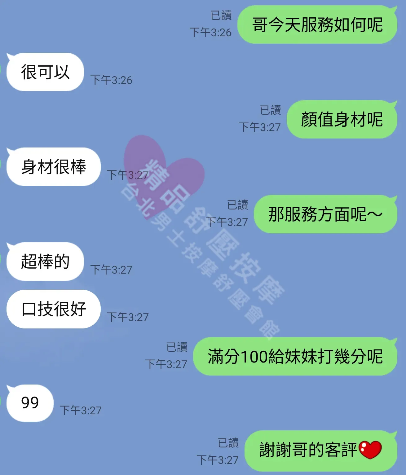 美容師都很有禮貌,先幫你背部按摩聊聊天,前戲會開始調情輕功,再來就是重點部位的加強。如果預算,也可以跟美容師聊聊加值服務,放心問都有機會。精品舒壓期待每位客人每次來舒壓都有個Happy Ending!