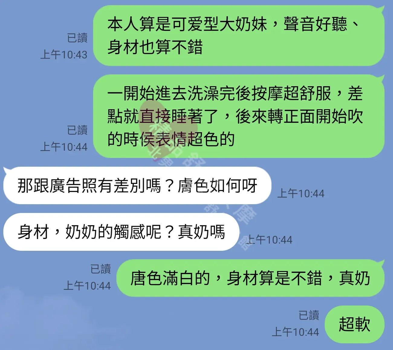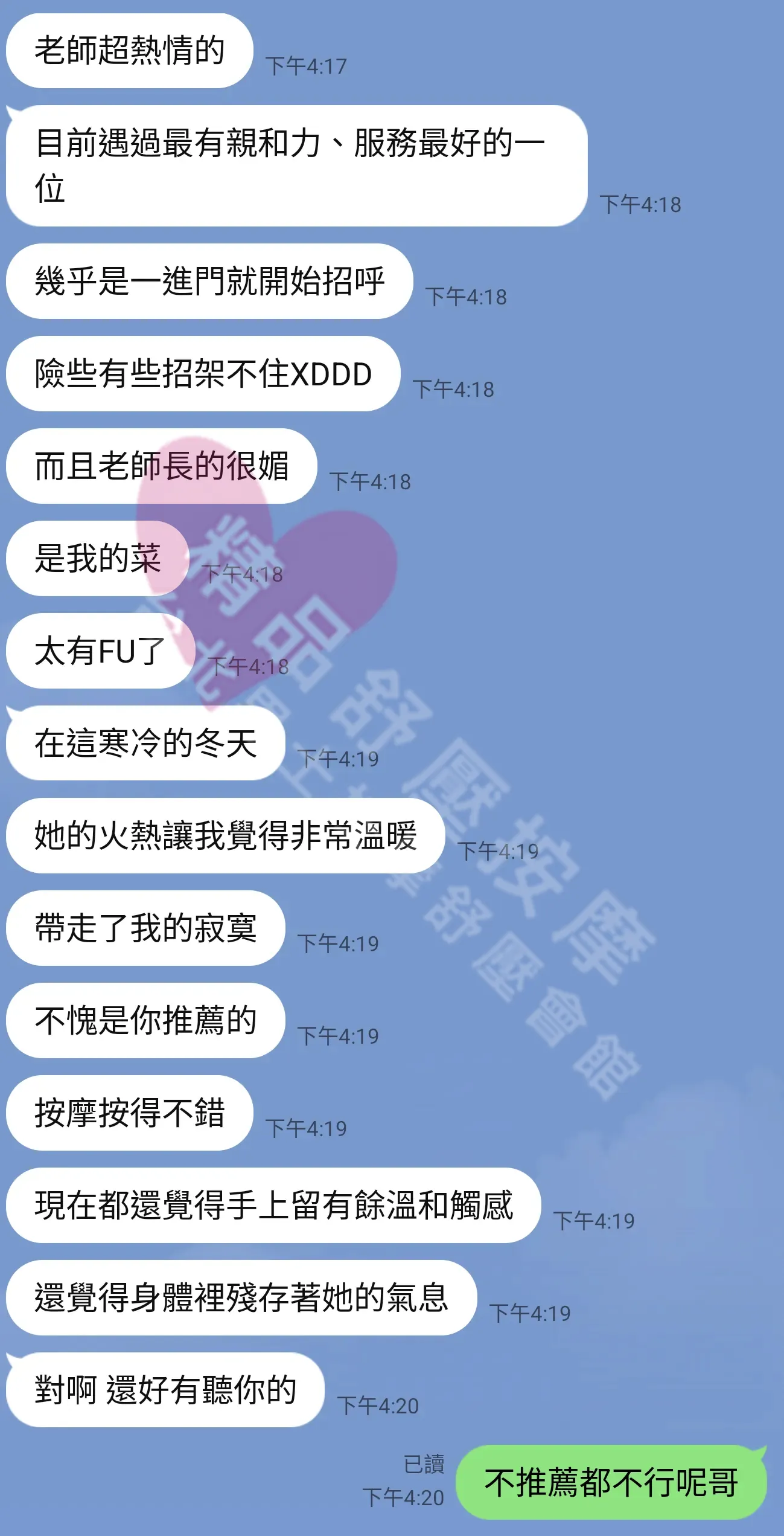 美容師都很有禮貌,先幫你背部按摩聊聊天,前戲會開始調情輕功,再來就是重點部位的加強。如果預算,也可以跟美容師聊聊加值服務,放心問都有機會。精品舒壓期待每位客人每次來舒壓都有個Happy Ending!