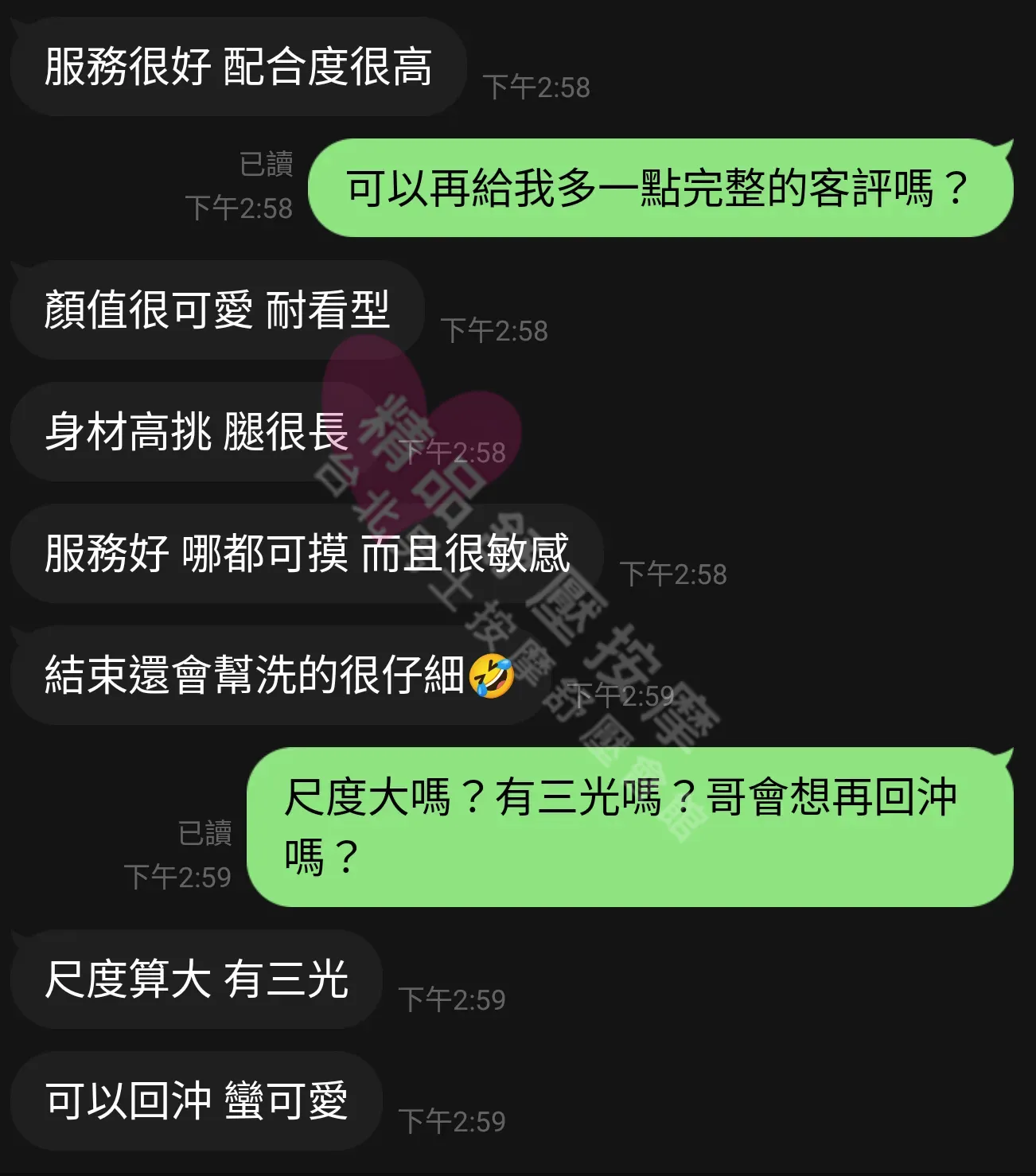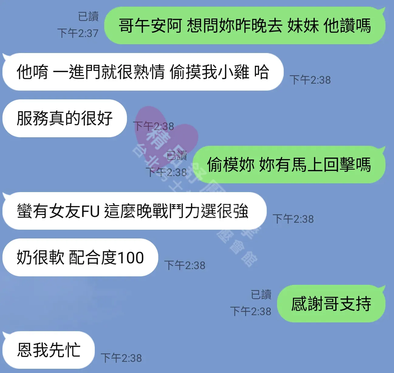 美容師都很有禮貌,先幫你背部按摩聊聊天,前戲會開始調情輕功,再來就是重點部位的加強。如果預算,也可以跟美容師聊聊加值服務,放心問都有機會。精品舒壓期待每位客人每次來舒壓都有個Happy Ending!