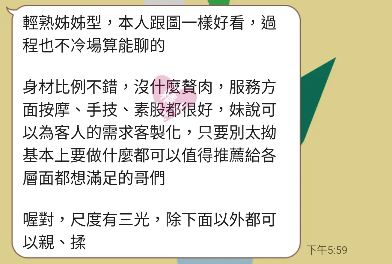 美容師都很有禮貌,先幫你背部按摩聊聊天,前戲會開始調情輕功,再來就是重點部位的加強。如果預算,也可以跟美容師聊聊加值服務,放心問都有機會。精品舒壓期待每位客人每次來舒壓都有個Happy Ending!