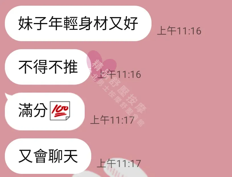 美容師都很有禮貌,先幫你背部按摩聊聊天,前戲會開始調情輕功,再來就是重點部位的加強。如果預算,也可以跟美容師聊聊加值服務,放心問都有機會。精品舒壓期待每位客人每次來舒壓都有個Happy Ending!