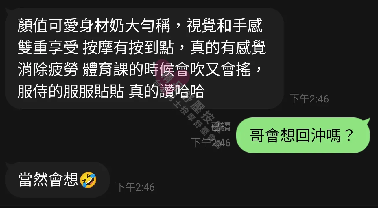 美容師都很有禮貌,先幫你背部按摩聊聊天,前戲會開始調情輕功,再來就是重點部位的加強。如果預算,也可以跟美容師聊聊加值服務,放心問都有機會。精品舒壓期待每位客人每次來舒壓都有個Happy Ending!