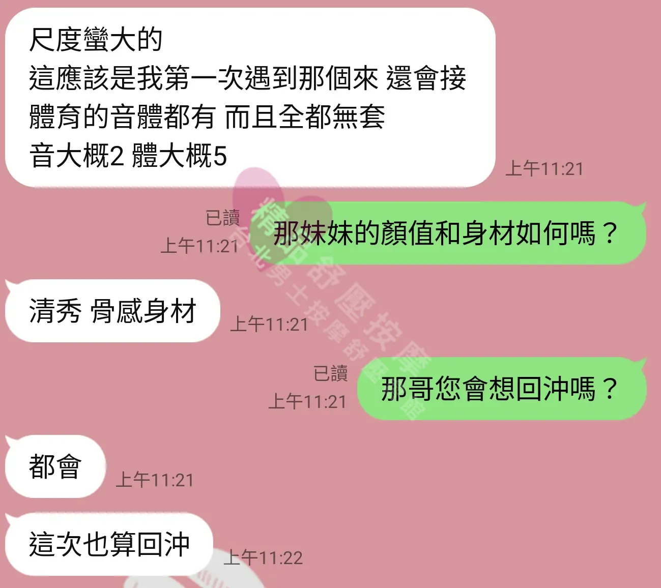 美容師都很有禮貌,先幫你背部按摩聊聊天,前戲會開始調情輕功,再來就是重點部位的加強。如果預算,也可以跟美容師聊聊加值服務,放心問都有機會。精品舒壓期待每位客人每次來舒壓都有個Happy Ending!