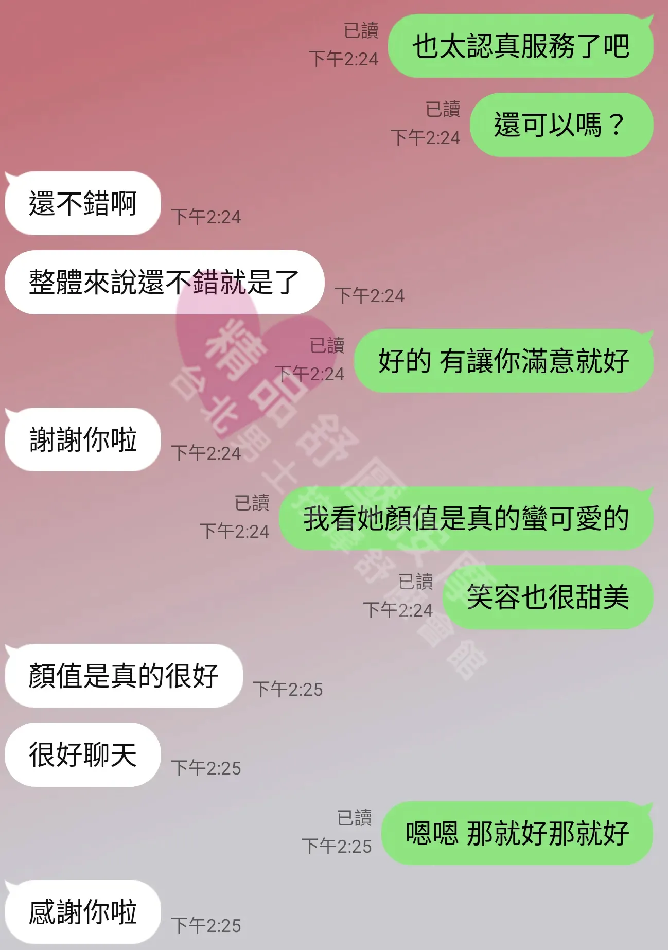 美容師都很有禮貌,先幫你背部按摩聊聊天,前戲會開始調情輕功,再來就是重點部位的加強。如果預算,也可以跟美容師聊聊加值服務,放心問都有機會。精品舒壓期待每位客人每次來舒壓都有個Happy Ending!