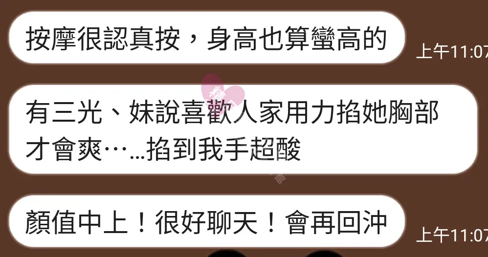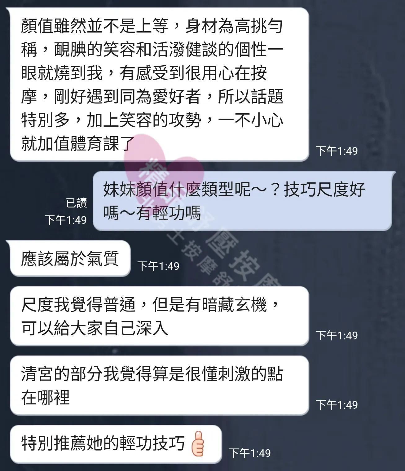 美容師都很有禮貌,先幫你背部按摩聊聊天,前戲會開始調情輕功,再來就是重點部位的加強。如果預算,也可以跟美容師聊聊加值服務,放心問都有機會。精品舒壓期待每位客人每次來舒壓都有個Happy Ending!