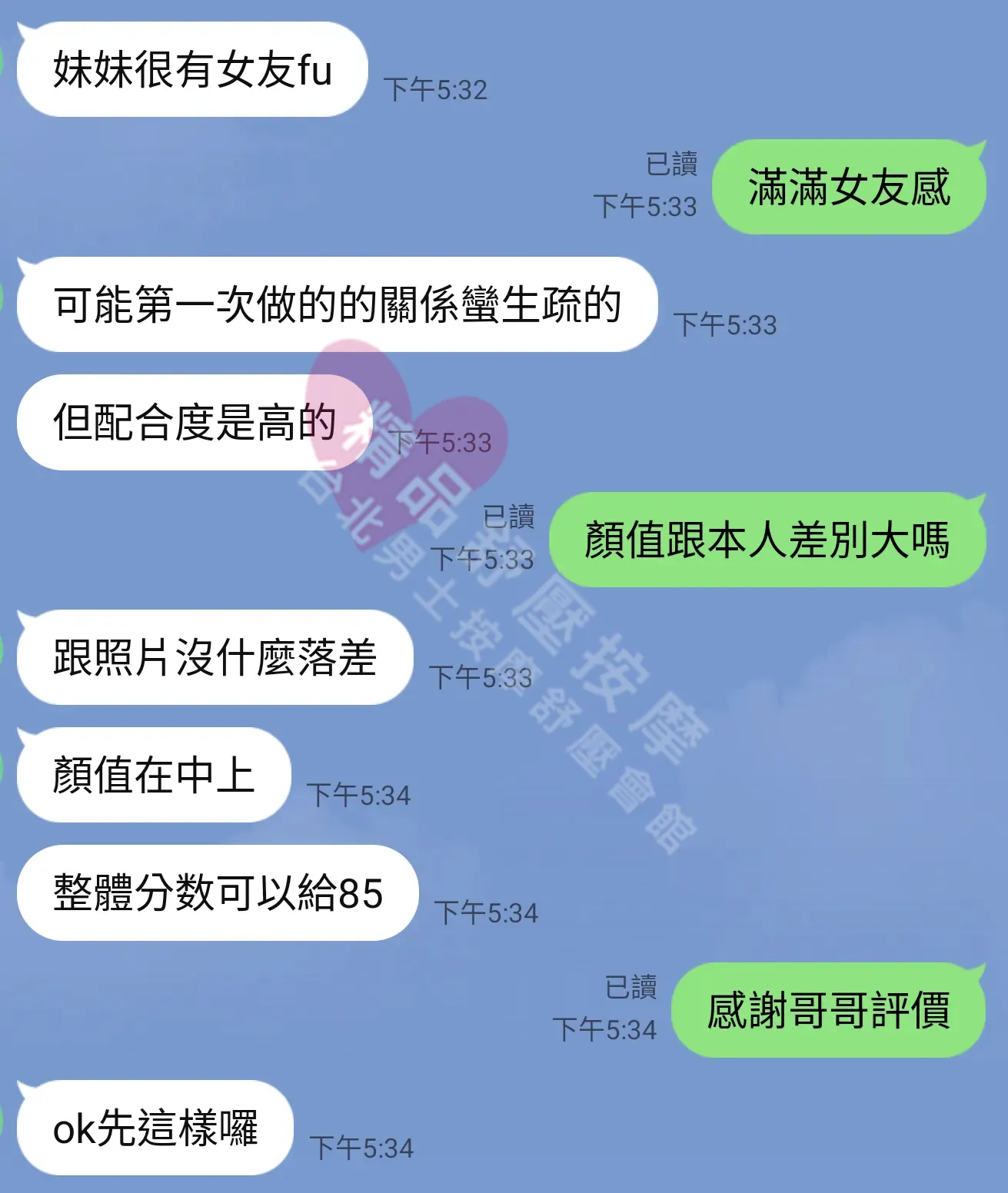 美容師都很有禮貌,先幫你背部按摩聊聊天,前戲會開始調情輕功,再來就是重點部位的加強。如果預算,也可以跟美容師聊聊加值服務,放心問都有機會。精品舒壓期待每位客人每次來舒壓都有個Happy Ending!