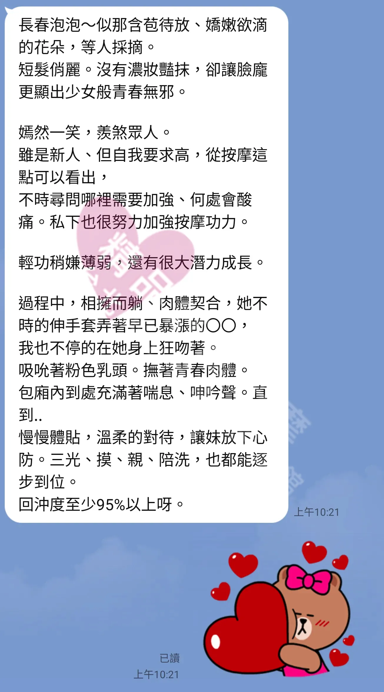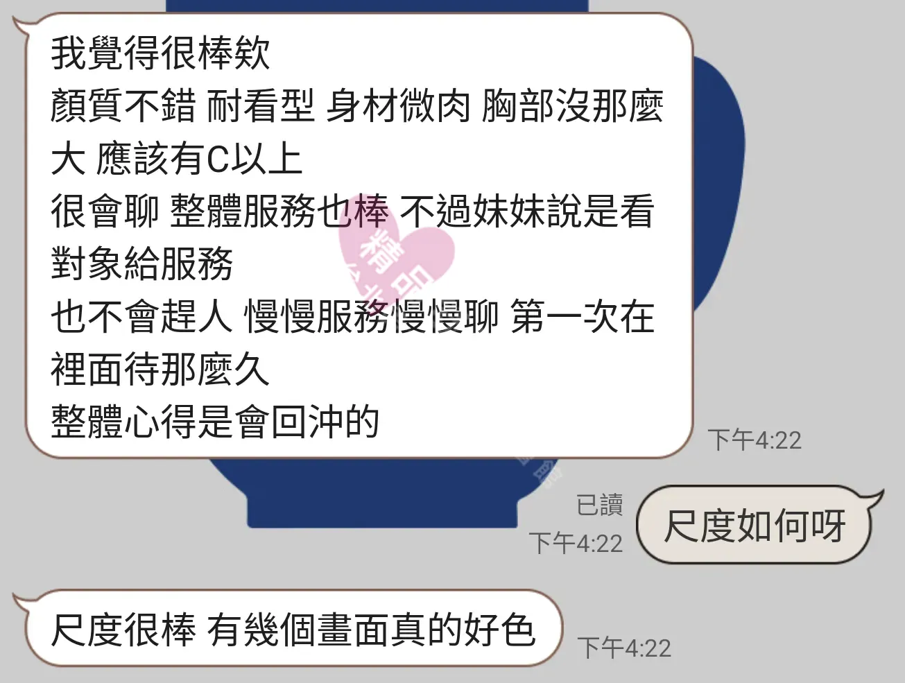 美容師都很有禮貌,先幫你背部按摩聊聊天,前戲會開始調情輕功,再來就是重點部位的加強。如果預算,也可以跟美容師聊聊加值服務,放心問都有機會。精品舒壓期待每位客人每次來舒壓都有個Happy Ending!