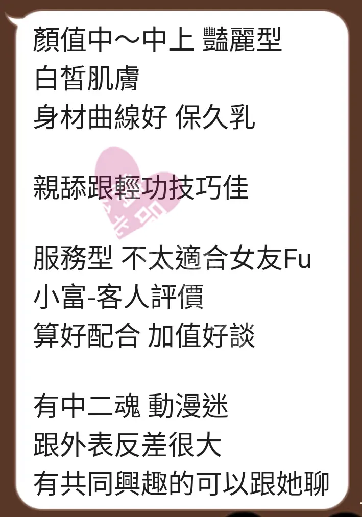 提前跟幹部預約,提出自己對美容師的要求,例如是大奶、長腿又或是小隻馬等等,通常幹部都會盡可能滿在你的要求,還可以選擇想要怎麼玩,是否可以加值更多的服務等等,這些都能通過幹部來提前預約實現。