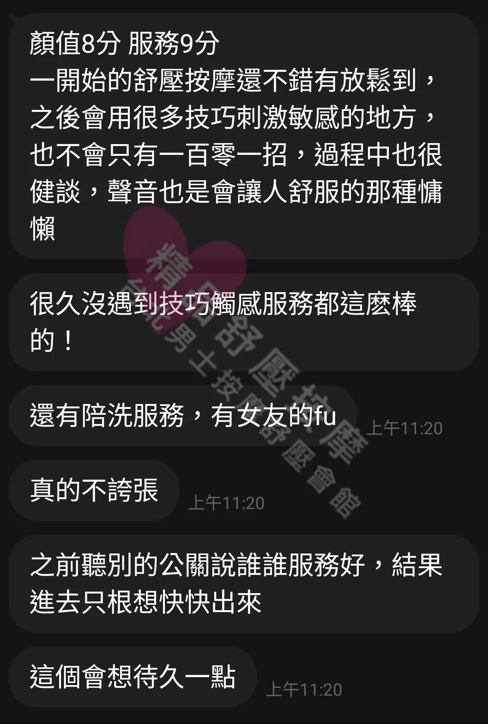 美容師都很有禮貌,先幫你背部按摩聊聊天,前戲會開始調情輕功,再來就是重點部位的加強。如果預算,也可以跟美容師聊聊加值服務,放心問都有機會。精品舒壓期待每位客人每次來舒壓都有個Happy Ending!