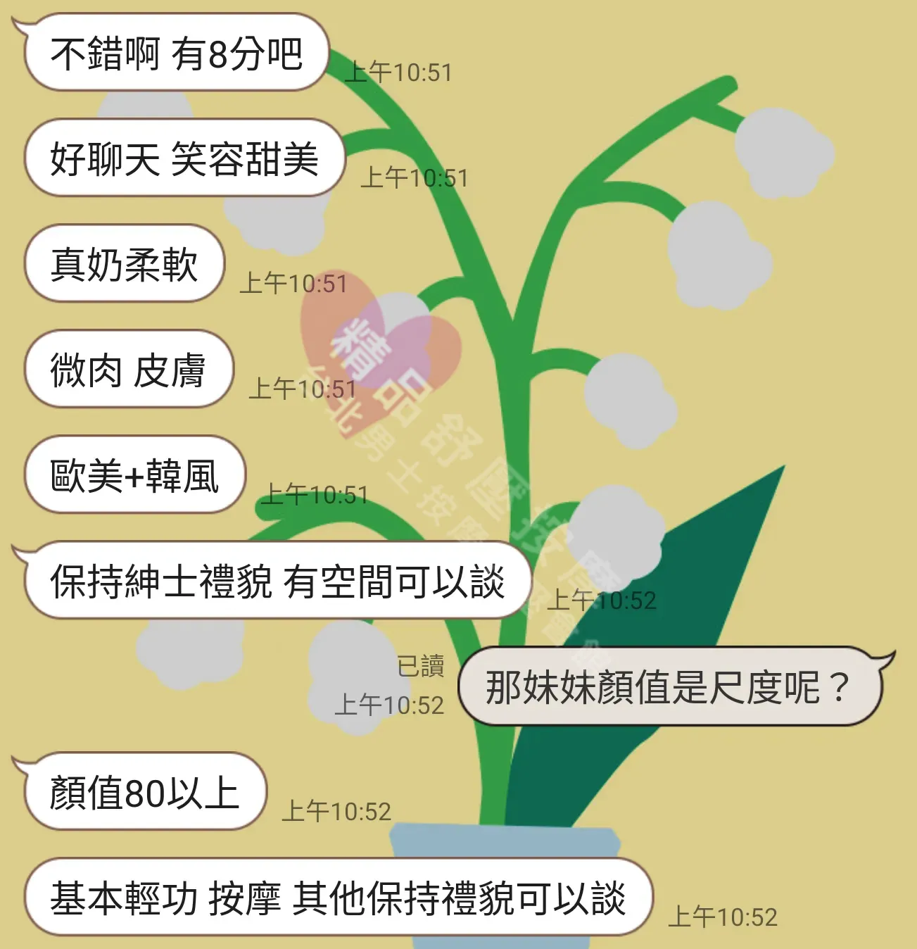 提前跟幹部預約,提出自己對美容師的要求,例如是大奶、長腿又或是小隻馬等等,通常幹部都會盡可能滿在你的要求,還可以選擇想要怎麼玩,是否可以加值更多的服務等等,這些都能通過幹部來提前預約實現。