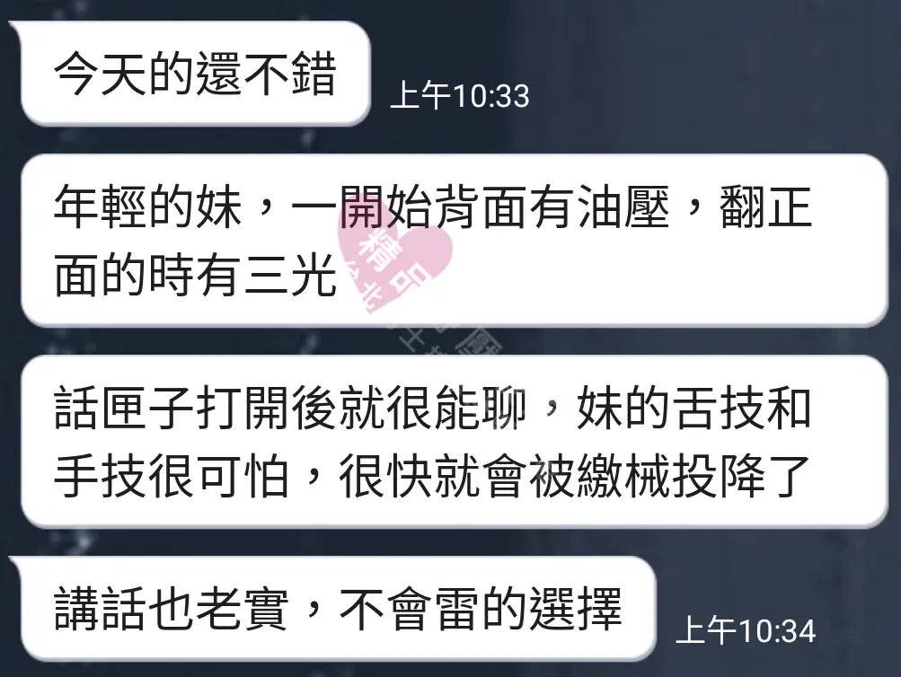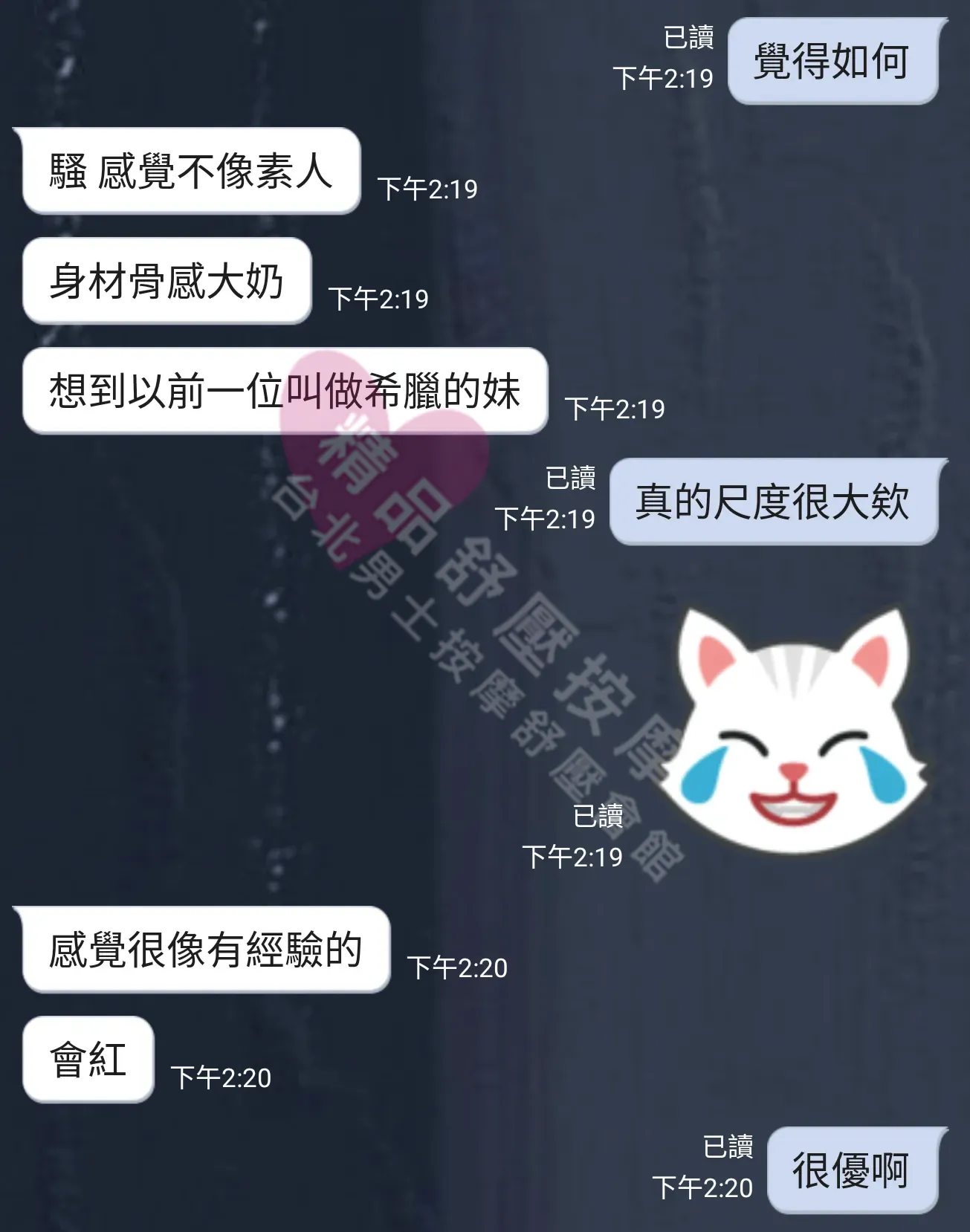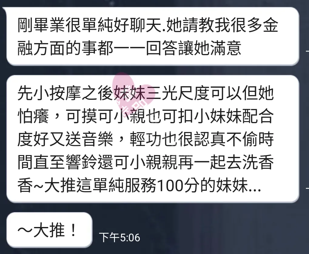 美容師都很有禮貌,先幫你背部按摩聊聊天,前戲會開始調情輕功,再來就是重點部位的加強。如果預算,也可以跟美容師聊聊加值服務,放心問都有機會。精品舒壓期待每位客人每次來舒壓都有個Happy Ending!