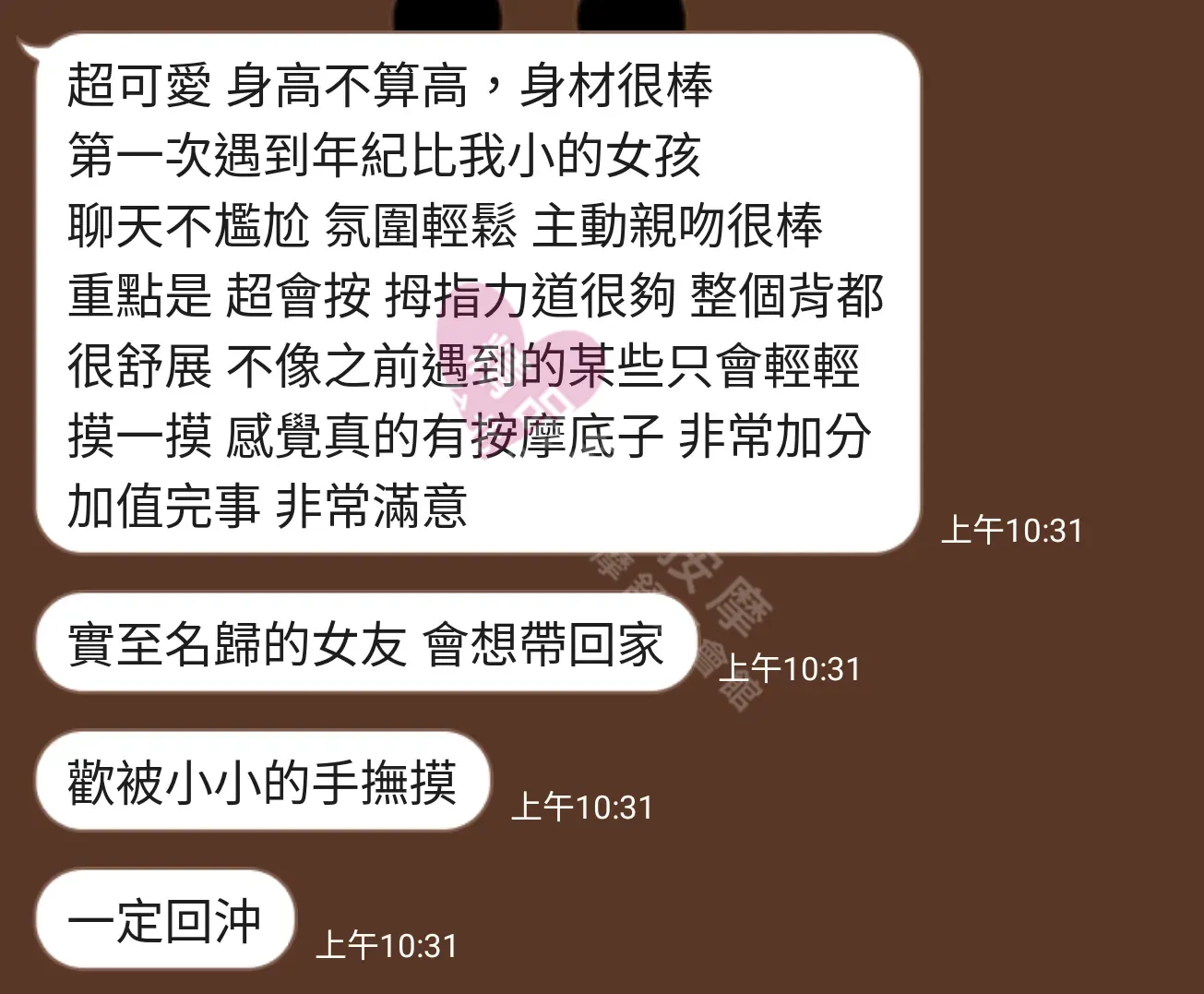 美容師都很有禮貌,先幫你背部按摩聊聊天,前戲會開始調情輕功,再來就是重點部位的加強。如果預算,也可以跟美容師聊聊加值服務,放心問都有機會。精品舒壓期待每位客人每次來舒壓都有個Happy Ending!