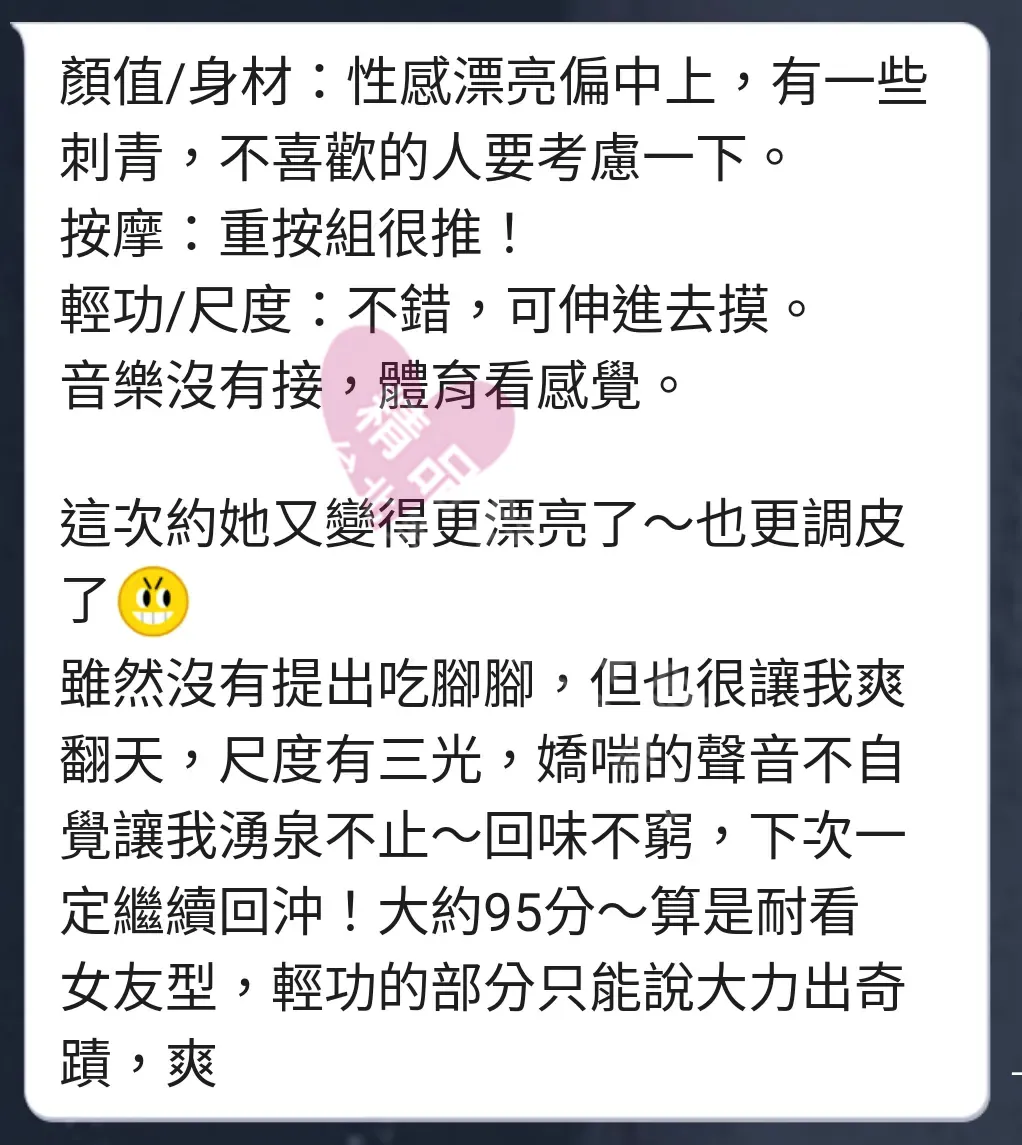 美容師都很有禮貌,先幫你背部按摩聊聊天,前戲會開始調情輕功,再來就是重點部位的加強。如果預算,也可以跟美容師聊聊加值服務,放心問都有機會。精品舒壓期待每位客人每次來舒壓都有個Happy Ending!