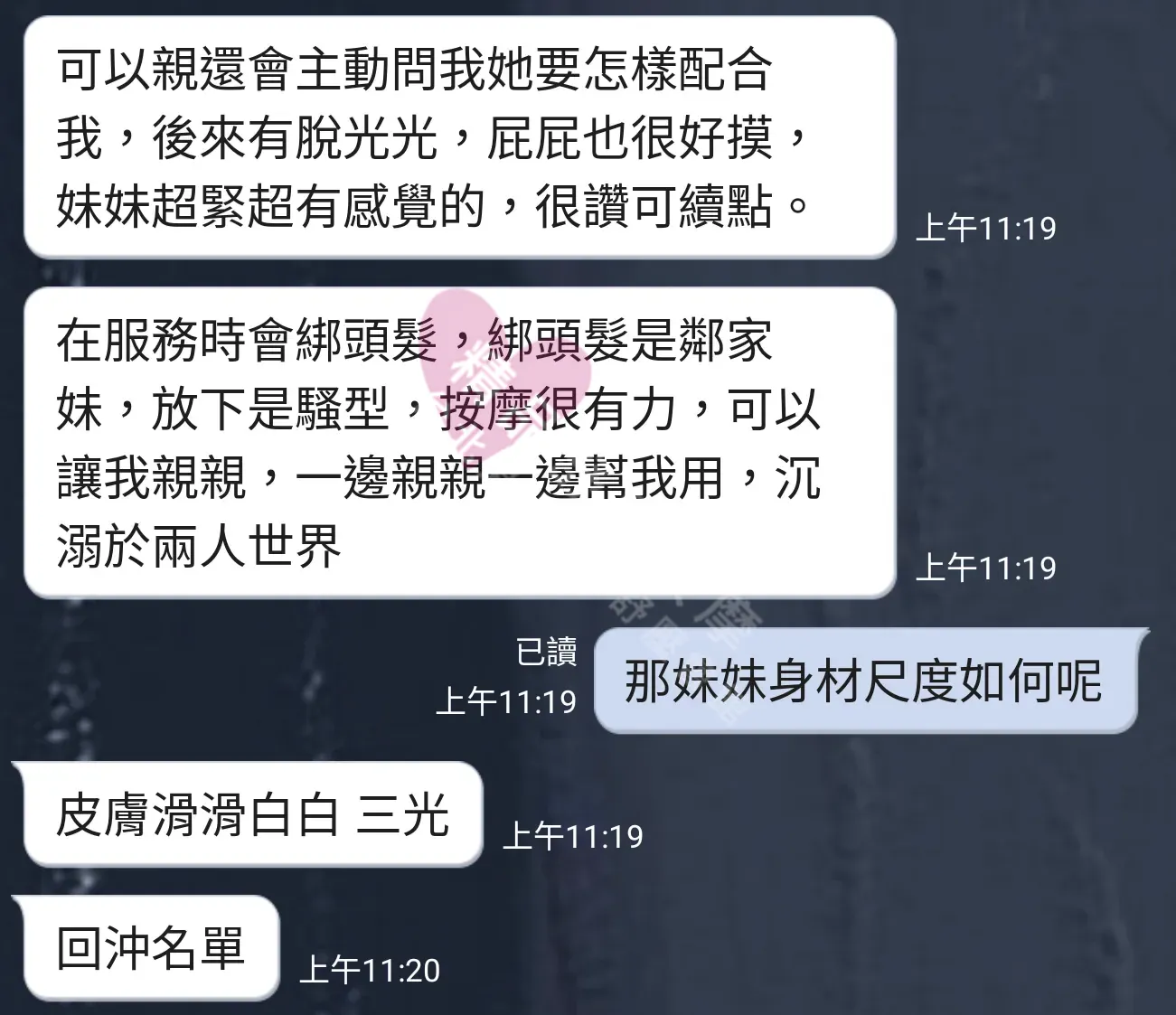 美容師都很有禮貌,先幫你背部按摩聊聊天,前戲會開始調情輕功,再來就是重點部位的加強。如果預算,也可以跟美容師聊聊加值服務,放心問都有機會。精品舒壓期待每位客人每次來舒壓都有個Happy Ending!