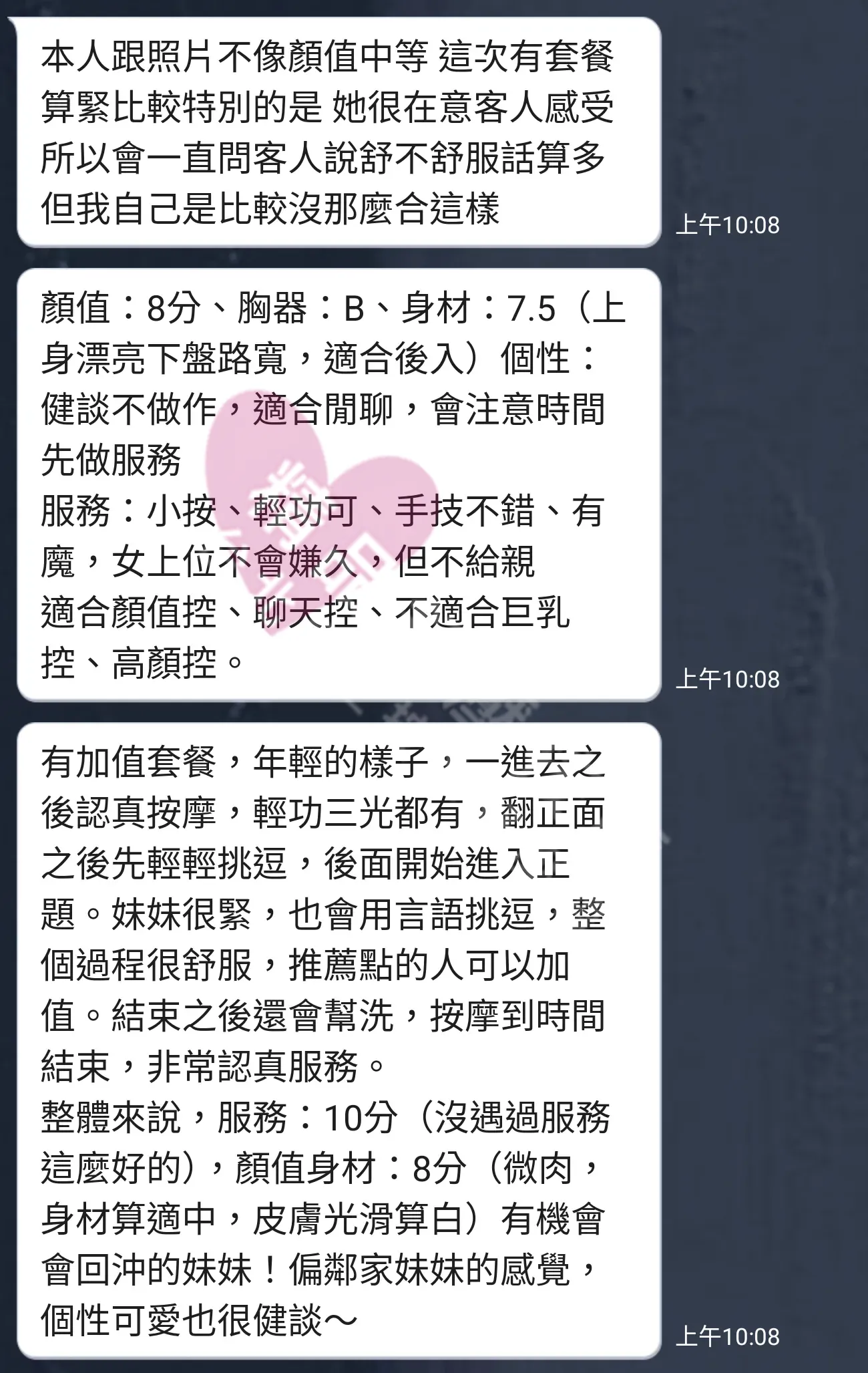 美容師都很有禮貌,先幫你背部按摩聊聊天,前戲會開始調情輕功,再來就是重點部位的加強。如果預算,也可以跟美容師聊聊加值服務,放心問都有機會。精品舒壓期待每位客人每次來舒壓都有個Happy Ending!