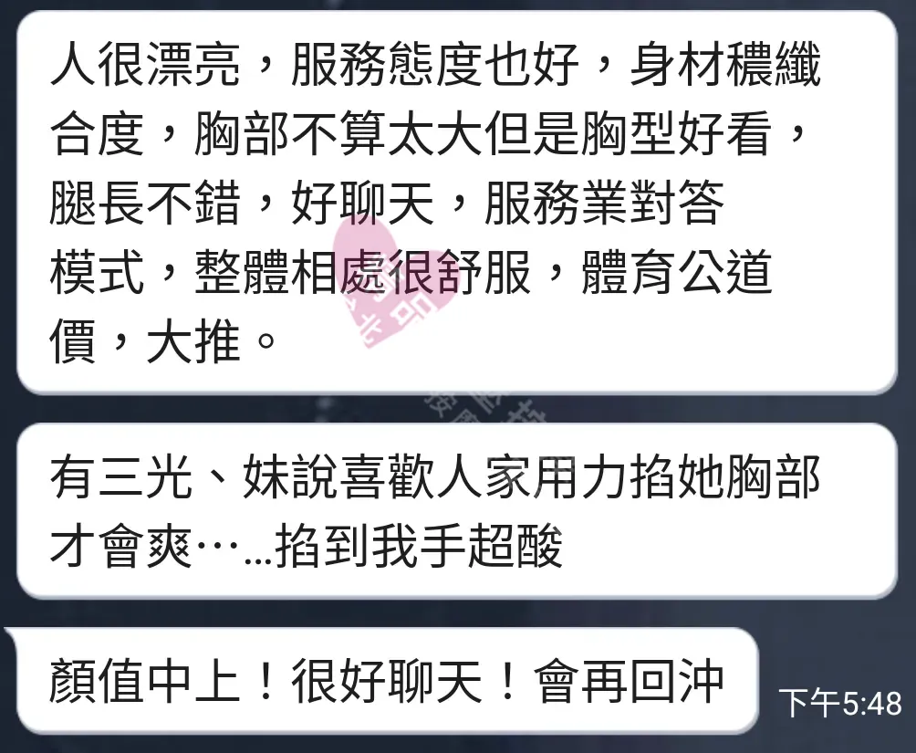 美容師都很有禮貌,先幫你背部按摩聊聊天,前戲會開始調情輕功,再來就是重點部位的加強。如果預算,也可以跟美容師聊聊加值服務,放心問都有機會。精品舒壓期待每位客人每次來舒壓都有個Happy Ending!