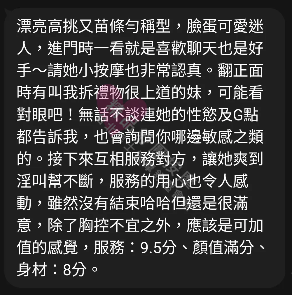美容師都很有禮貌,先幫你背部按摩聊聊天,前戲會開始調情輕功,再來就是重點部位的加強。如果預算,也可以跟美容師聊聊加值服務,放心問都有機會。精品舒壓期待每位客人每次來舒壓都有個Happy Ending!