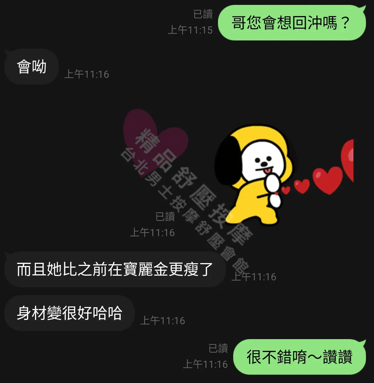 美容師都很有禮貌,先幫你背部按摩聊聊天,前戲會開始調情輕功,再來就是重點部位的加強。如果預算,也可以跟美容師聊聊加值服務,放心問都有機會。精品舒壓期待每位客人每次來舒壓都有個Happy Ending!