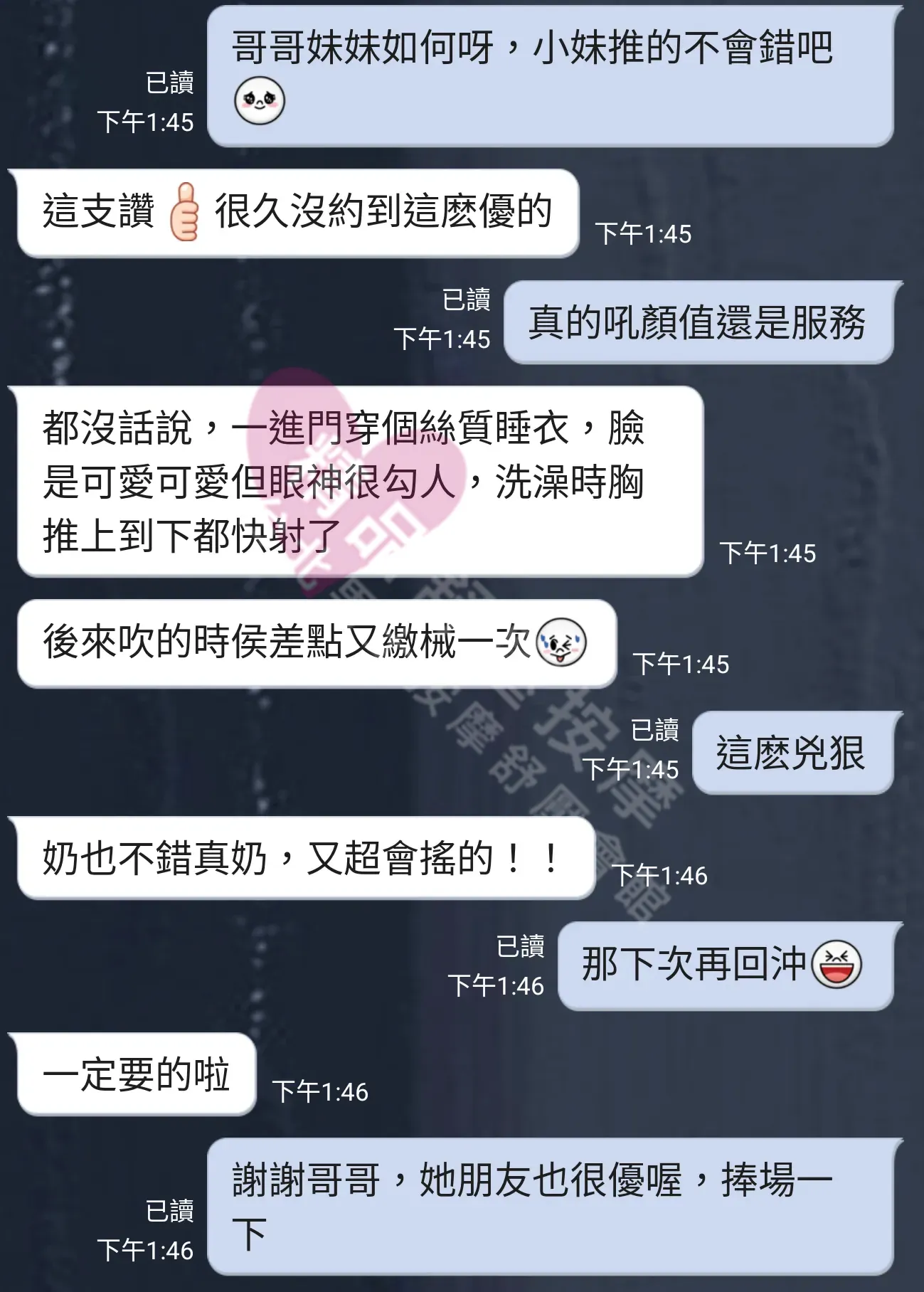 美容師都很有禮貌,先幫你背部按摩聊聊天,前戲會開始調情輕功,再來就是重點部位的加強。如果預算,也可以跟美容師聊聊加值服務,放心問都有機會。精品舒壓期待每位客人每次來舒壓都有個Happy Ending!
