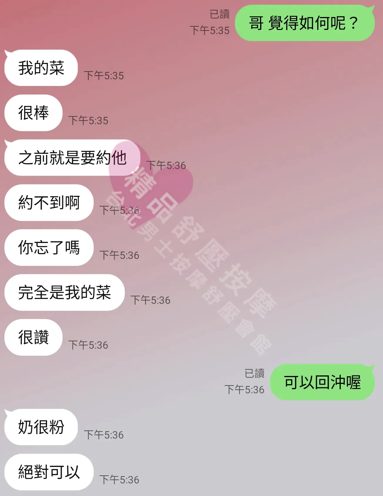 美容師都很有禮貌,先幫你背部按摩聊聊天,前戲會開始調情輕功,再來就是重點部位的加強。如果預算,也可以跟美容師聊聊加值服務,放心問都有機會。精品舒壓期待每位客人每次來舒壓都有個Happy Ending!