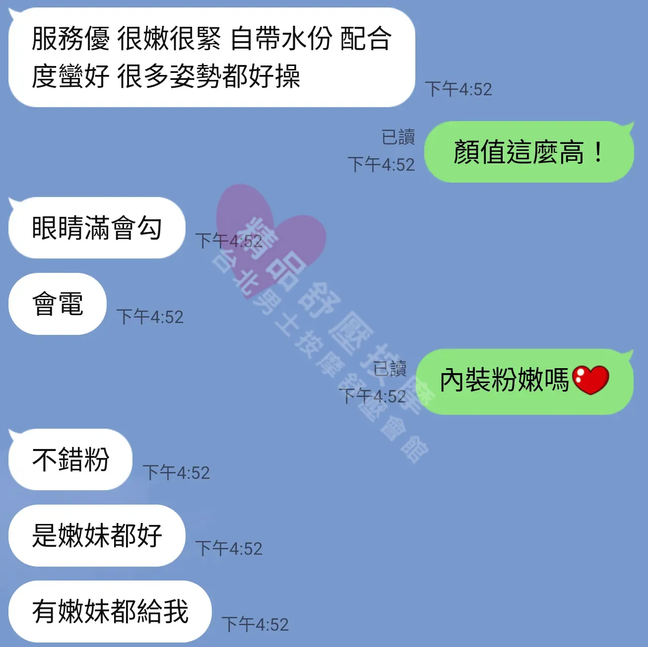 美容師都很有禮貌,先幫你背部按摩聊聊天,前戲會開始調情輕功,再來就是重點部位的加強。如果預算,也可以跟美容師聊聊加值服務,放心問都有機會。精品舒壓期待每位客人每次來舒壓都有個Happy Ending!