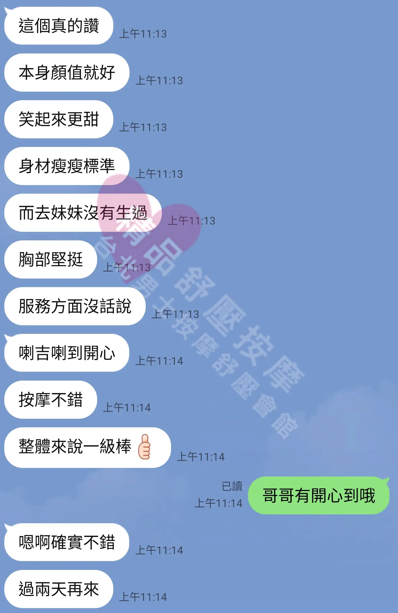 美容師都很有禮貌,先幫你背部按摩聊聊天,前戲會開始調情輕功,再來就是重點部位的加強。如果預算,也可以跟美容師聊聊加值服務,放心問都有機會。精品舒壓期待每位客人每次來舒壓都有個Happy Ending!
