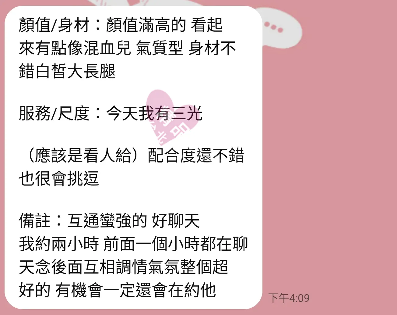 提前跟幹部預約,提出自己對美容師的要求,例如是大奶、長腿又或是小隻馬等等,通常幹部都會盡可能滿在你的要求,還可以選擇想要怎麼玩,是否可以加值更多的服務等等,這些都能通過幹部來提前預約實現。