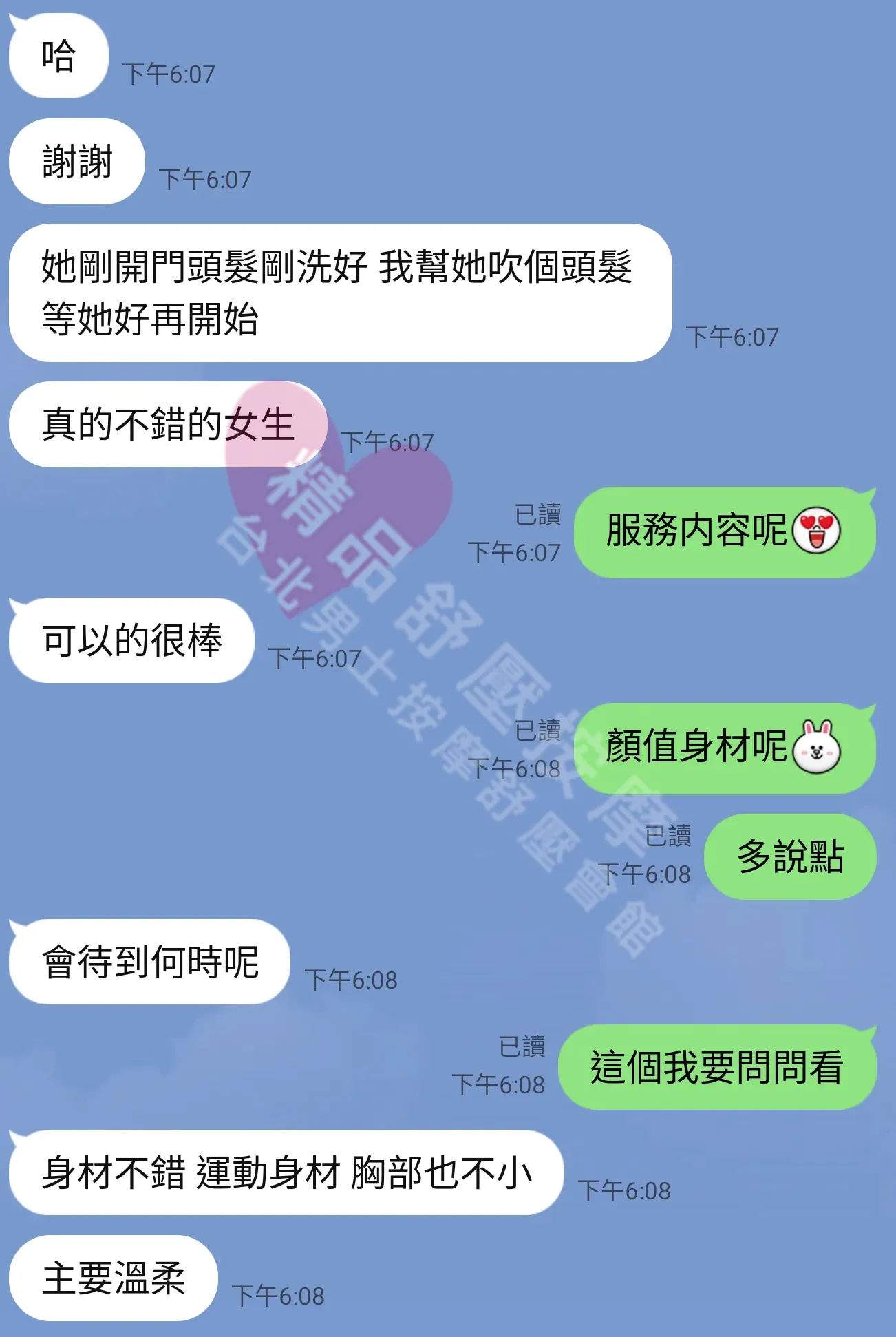 美容師都很有禮貌,先幫你背部按摩聊聊天,前戲會開始調情輕功,再來就是重點部位的加強。如果預算,也可以跟美容師聊聊加值服務,放心問都有機會。精品舒壓期待每位客人每次來舒壓都有個Happy Ending!