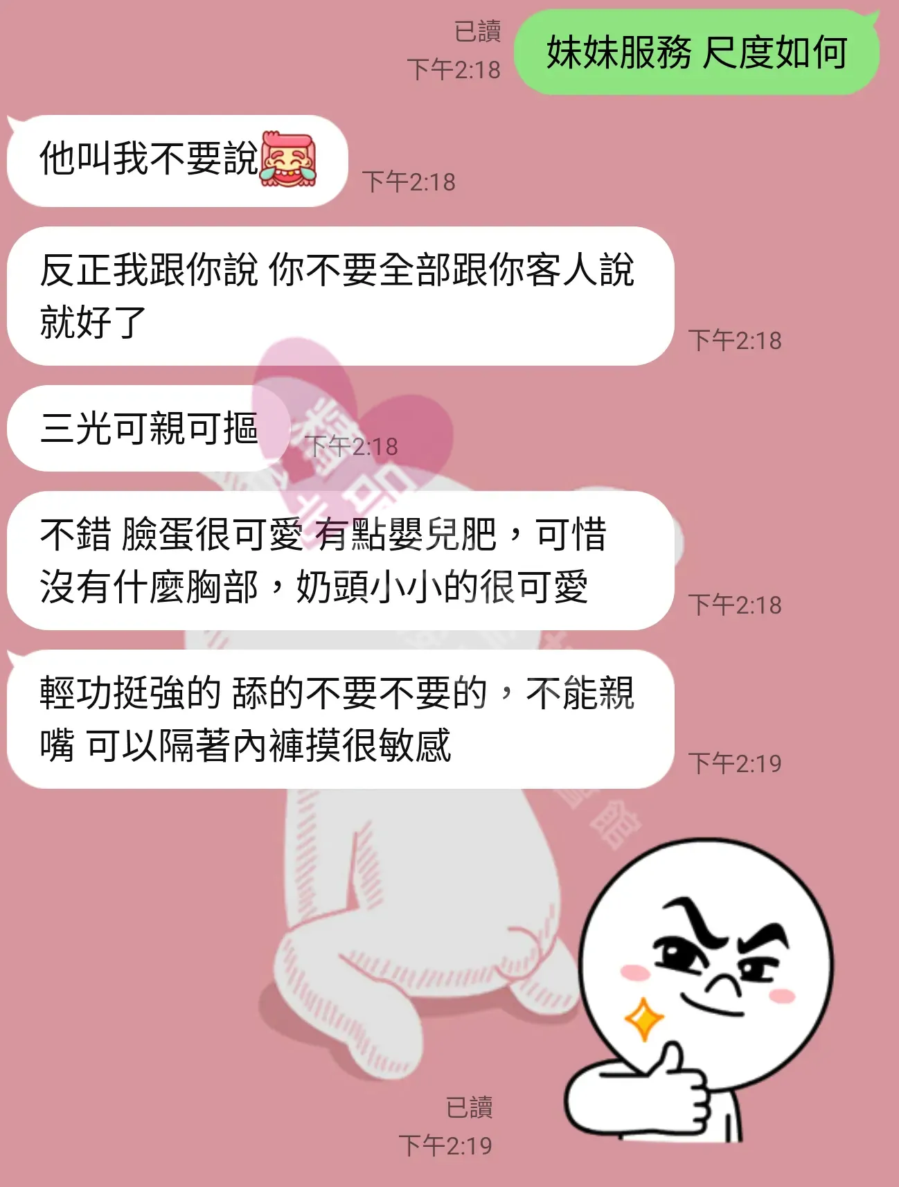 美容師都很有禮貌,先幫你背部按摩聊聊天,前戲會開始調情輕功,再來就是重點部位的加強。如果預算,也可以跟美容師聊聊加值服務,放心問都有機會。精品舒壓期待每位客人每次來舒壓都有個Happy Ending!