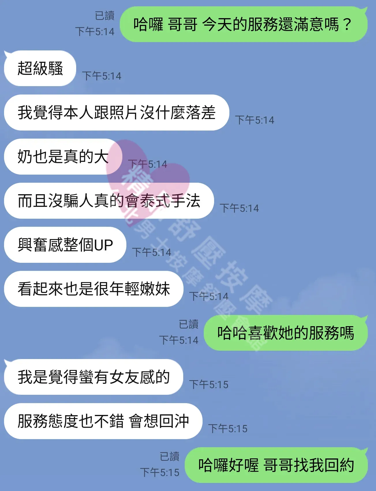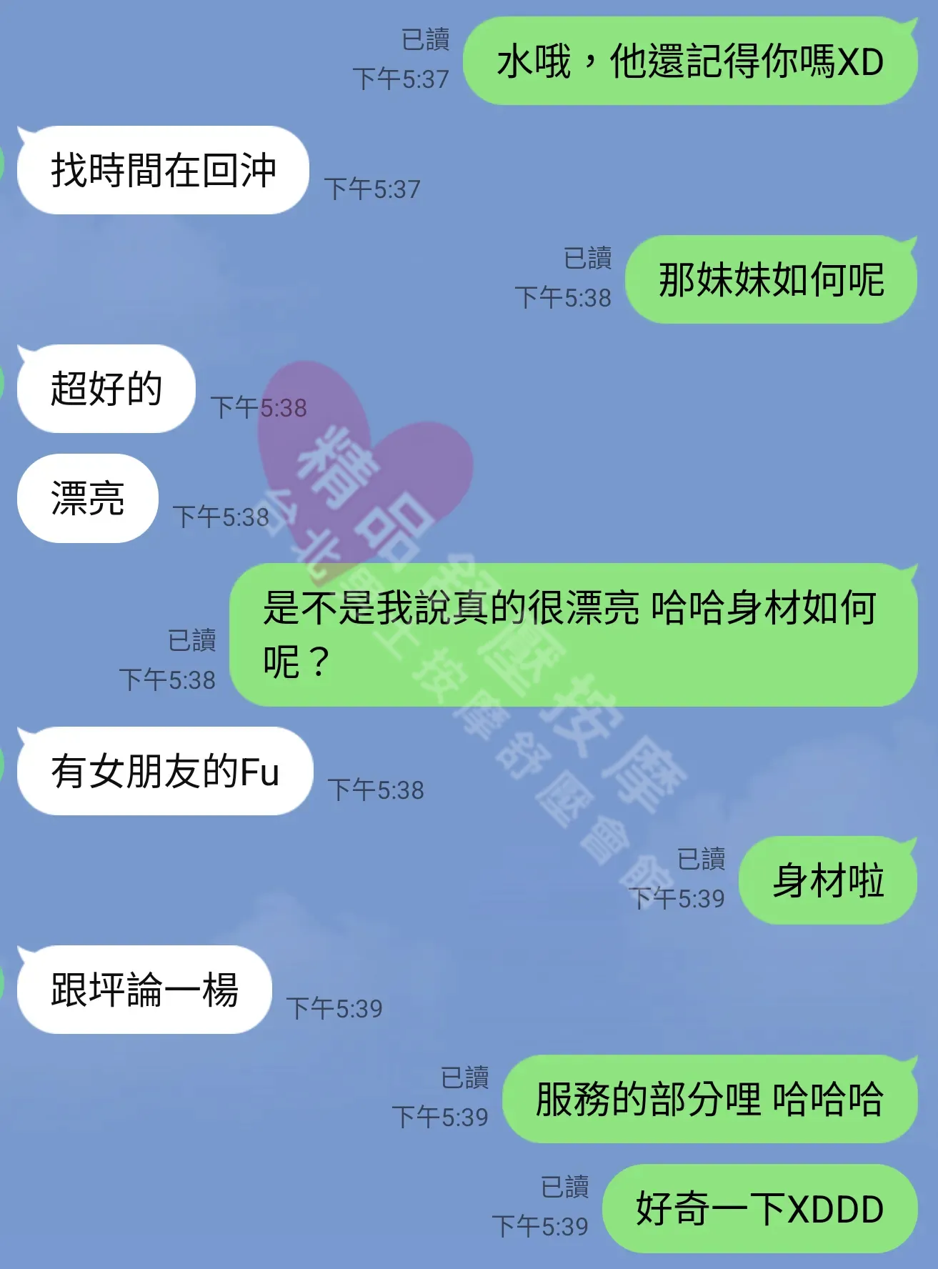美容師都很有禮貌,先幫你背部按摩聊聊天,前戲會開始調情輕功,再來就是重點部位的加強。如果預算,也可以跟美容師聊聊加值服務,放心問都有機會。精品舒壓期待每位客人每次來舒壓都有個Happy Ending!