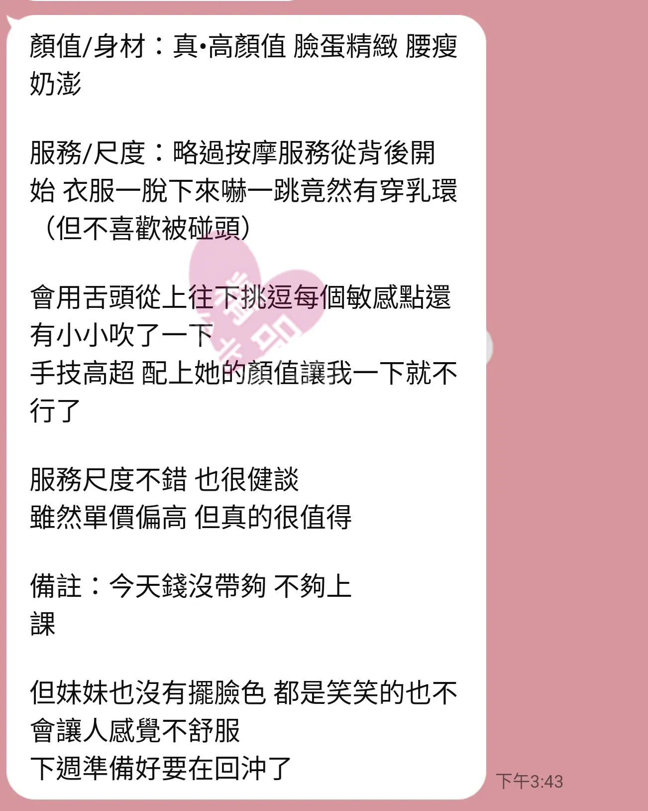 美容師都很有禮貌,先幫你背部按摩聊聊天,前戲會開始調情輕功,再來就是重點部位的加強。如果預算,也可以跟美容師聊聊加值服務,放心問都有機會。精品舒壓期待每位客人每次來舒壓都有個Happy Ending!