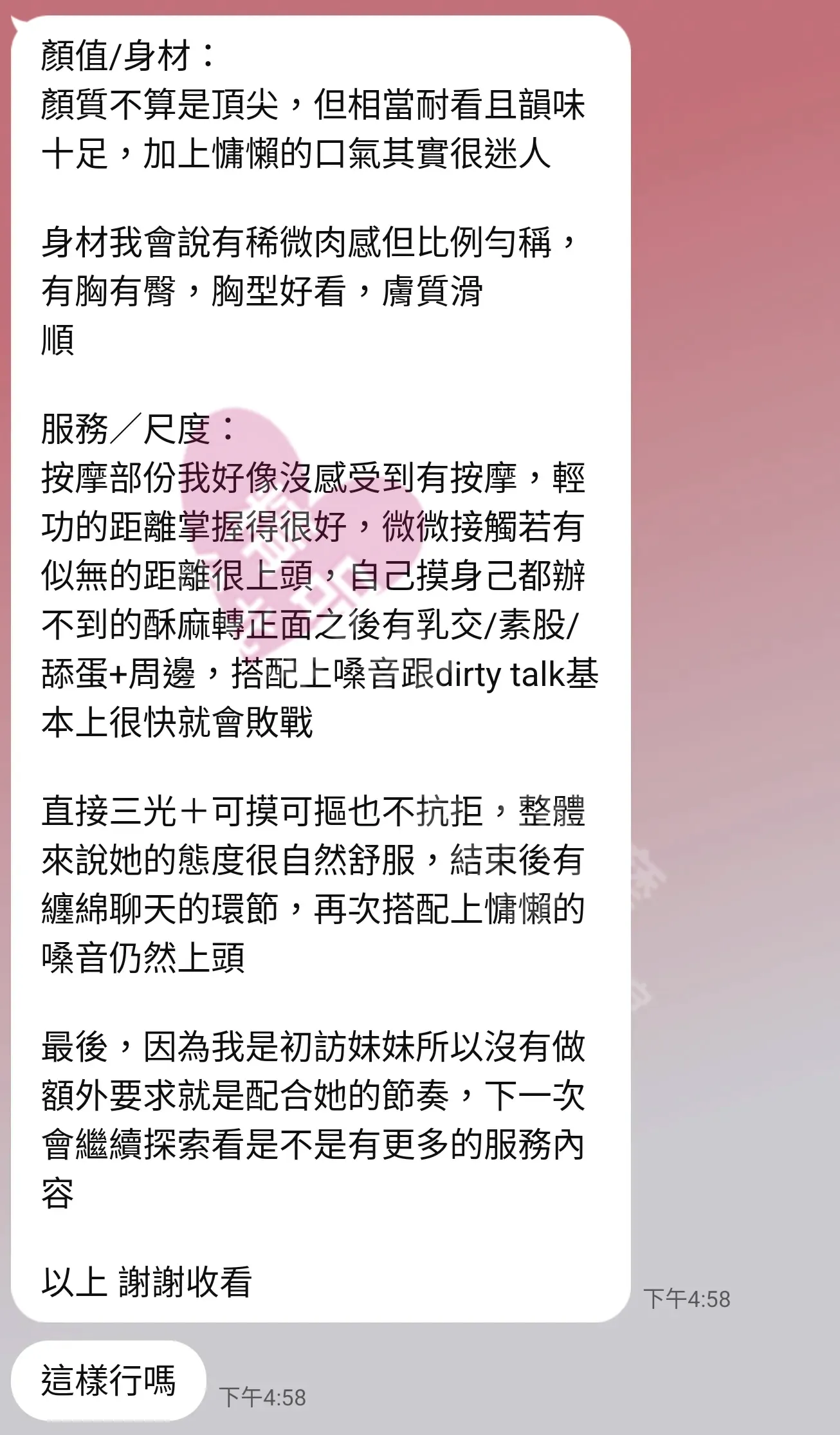 美容師都很有禮貌,先幫你背部按摩聊聊天,前戲會開始調情輕功,再來就是重點部位的加強。如果預算,也可以跟美容師聊聊加值服務,放心問都有機會。精品舒壓期待每位客人每次來舒壓都有個Happy Ending!