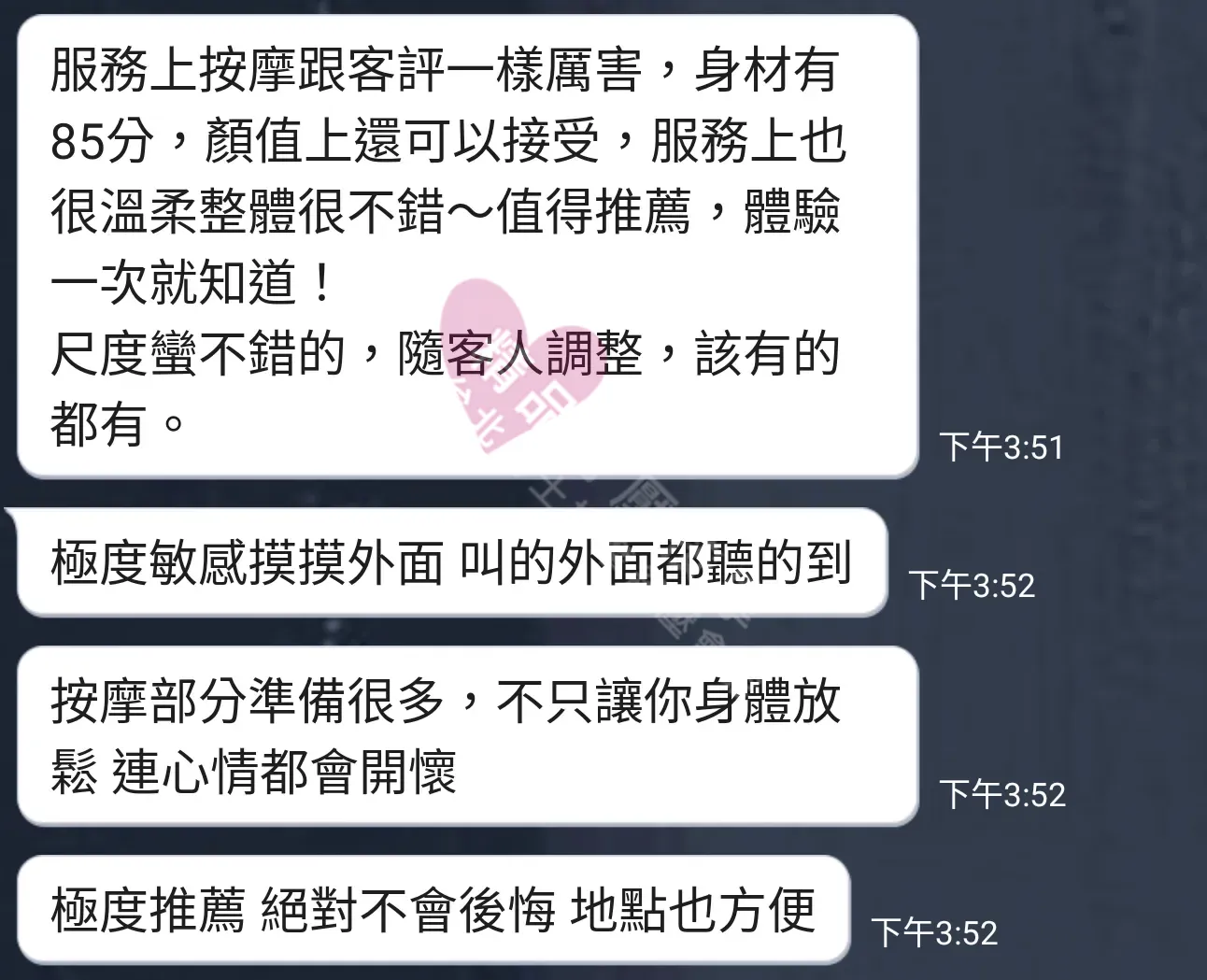 美容師都很有禮貌,先幫你背部按摩聊聊天,前戲會開始調情輕功,再來就是重點部位的加強。如果預算,也可以跟美容師聊聊加值服務,放心問都有機會。精品舒壓期待每位客人每次來舒壓都有個Happy Ending!