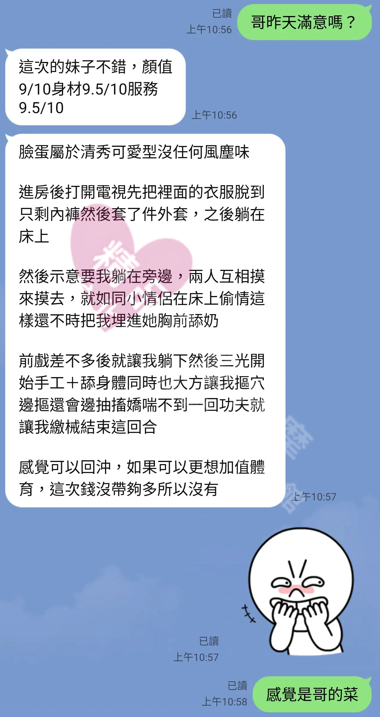 美容師都很有禮貌,先幫你背部按摩聊聊天,前戲會開始調情輕功,再來就是重點部位的加強。如果預算,也可以跟美容師聊聊加值服務,放心問都有機會。精品舒壓期待每位客人每次來舒壓都有個Happy Ending!