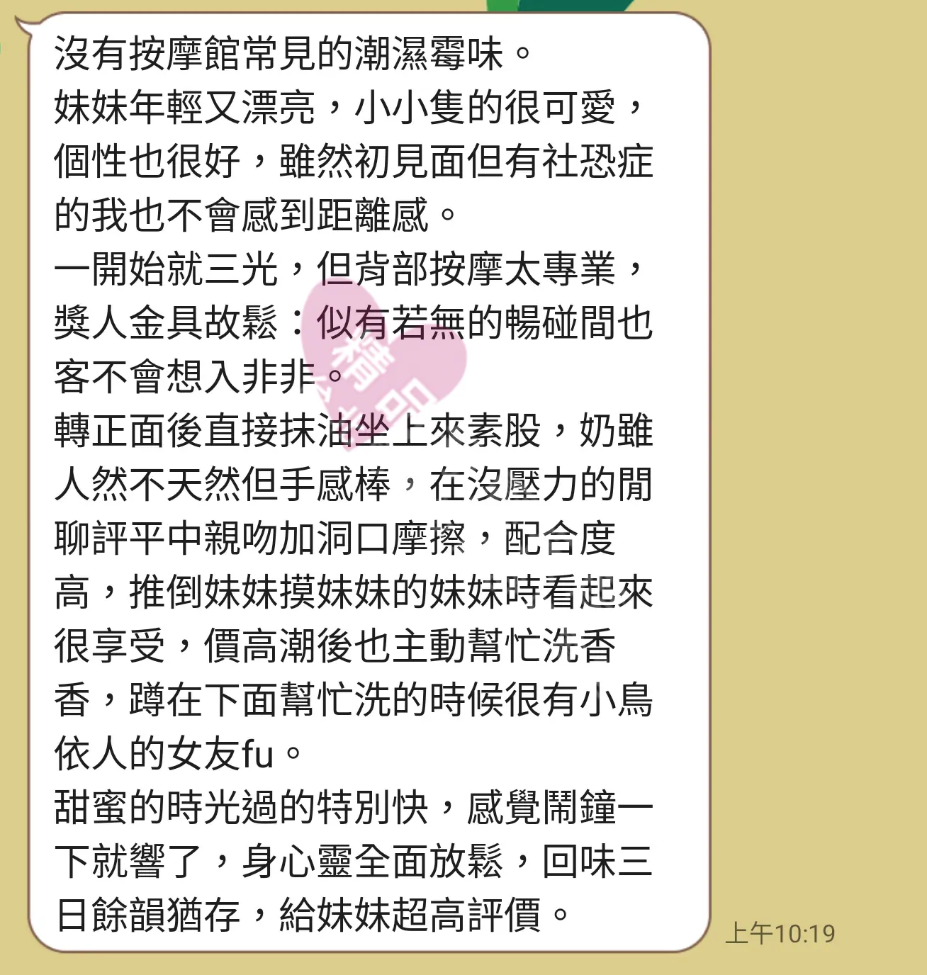 美容師都很有禮貌,先幫你背部按摩聊聊天,前戲會開始調情輕功,再來就是重點部位的加強。如果預算,也可以跟美容師聊聊加值服務,放心問都有機會。精品舒壓期待每位客人每次來舒壓都有個Happy Ending!