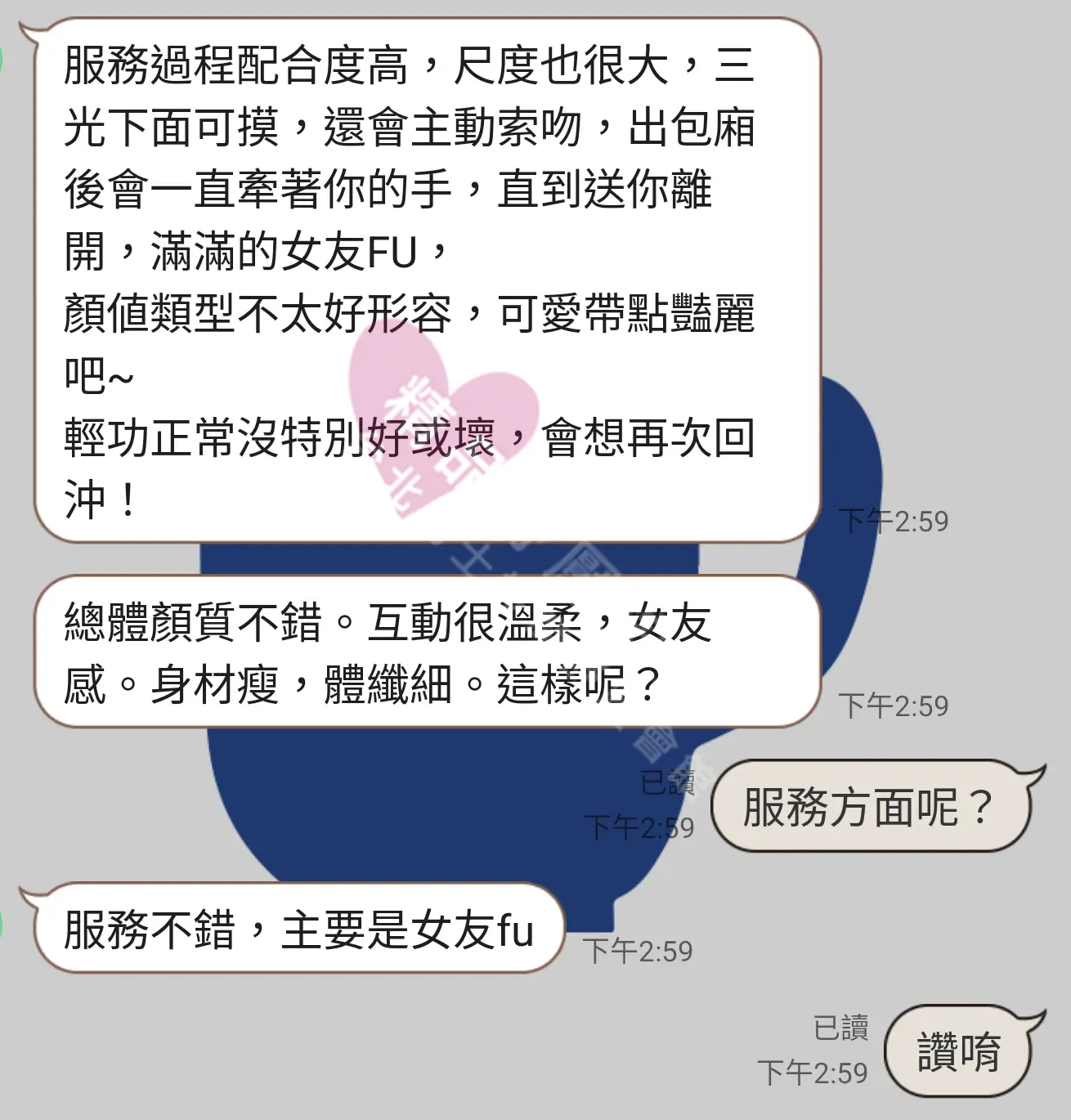 美容師都很有禮貌,先幫你背部按摩聊聊天,前戲會開始調情輕功,再來就是重點部位的加強。如果預算,也可以跟美容師聊聊加值服務,放心問都有機會。精品舒壓期待每位客人每次來舒壓都有個Happy Ending!