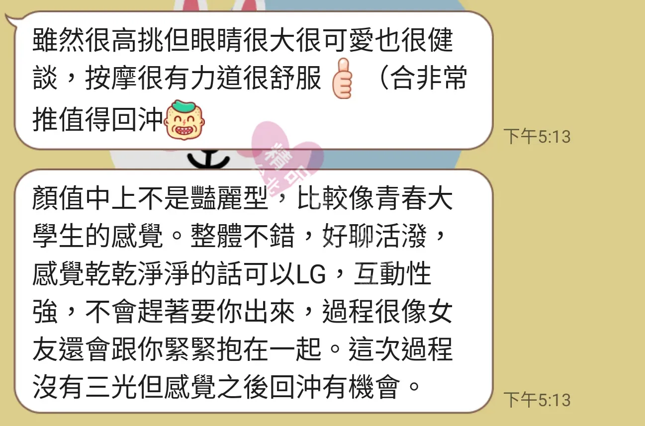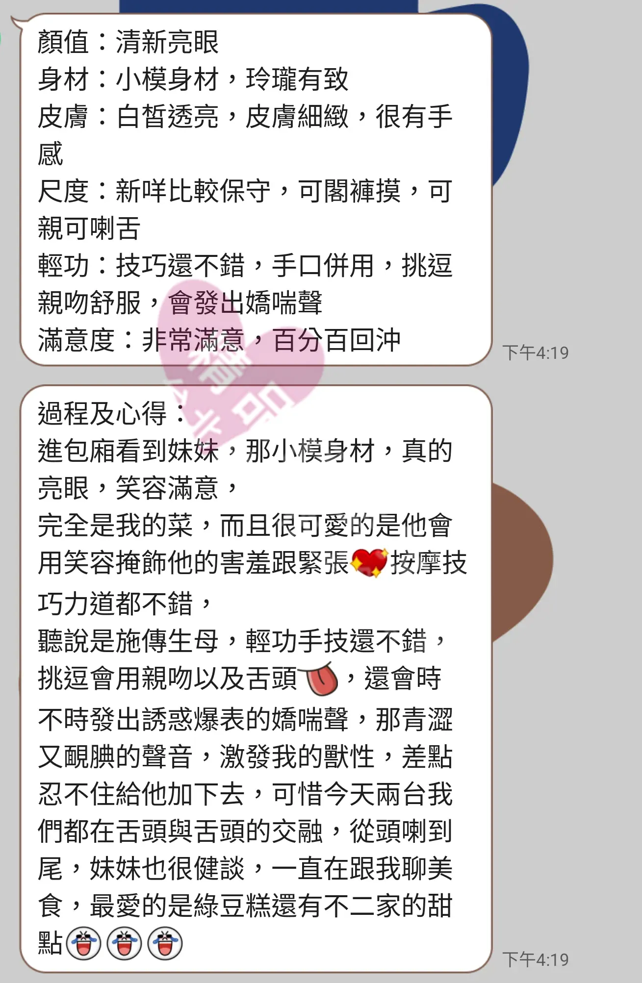美容師都很有禮貌,先幫你背部按摩聊聊天,前戲會開始調情輕功,再來就是重點部位的加強。如果預算,也可以跟美容師聊聊加值服務,放心問都有機會。精品舒壓期待每位客人每次來舒壓都有個Happy Ending!