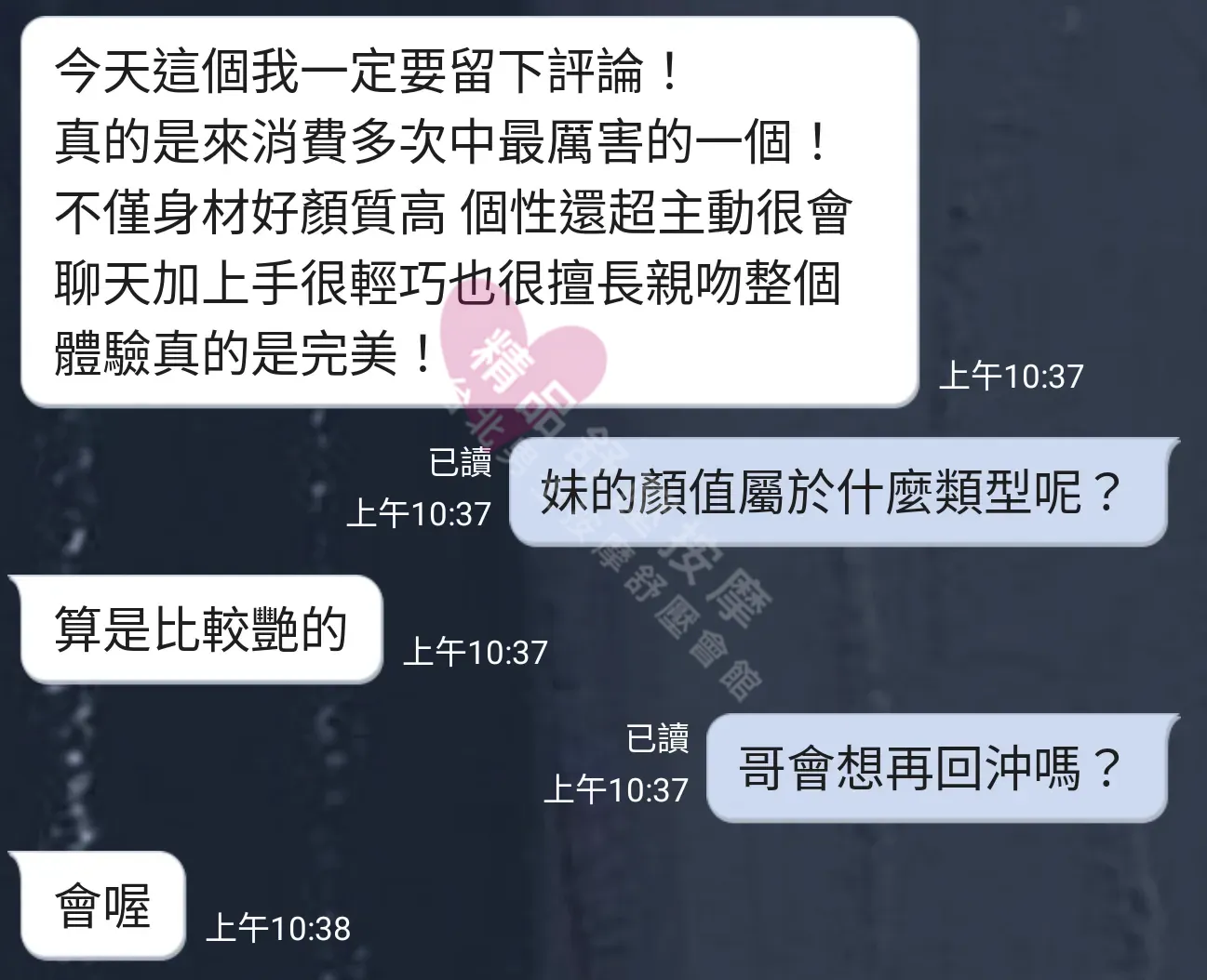 美容師都很有禮貌,先幫你背部按摩聊聊天,前戲會開始調情輕功,再來就是重點部位的加強。如果預算,也可以跟美容師聊聊加值服務,放心問都有機會。精品舒壓期待每位客人每次來舒壓都有個Happy Ending!