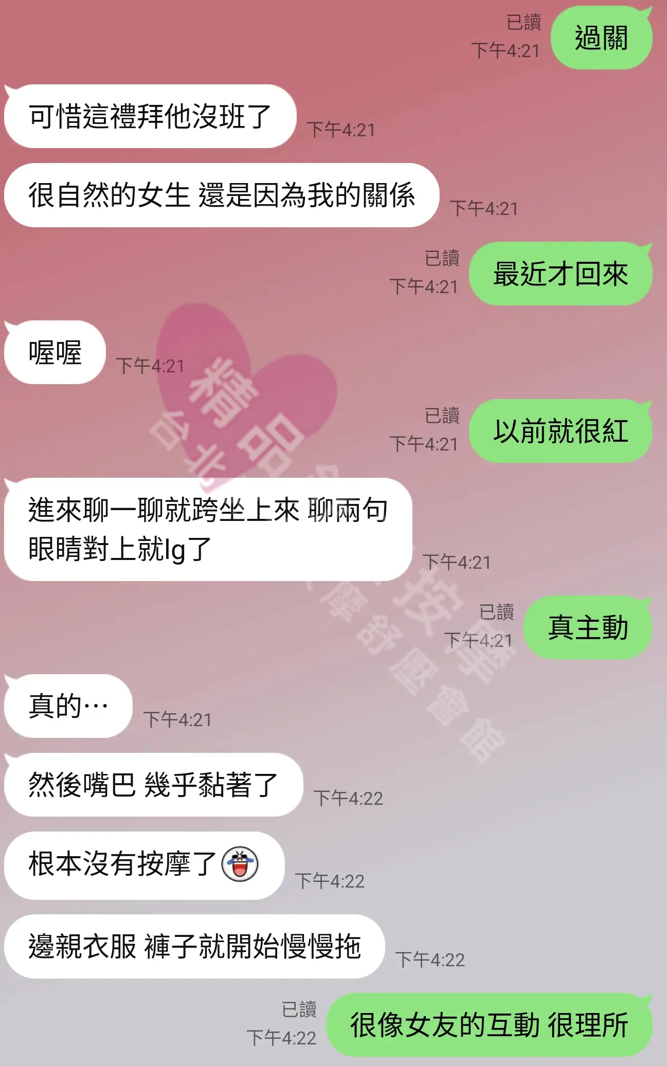 美容師都很有禮貌,先幫你背部按摩聊聊天,前戲會開始調情輕功,再來就是重點部位的加強。如果預算,也可以跟美容師聊聊加值服務,放心問都有機會。精品舒壓期待每位客人每次來舒壓都有個Happy Ending!