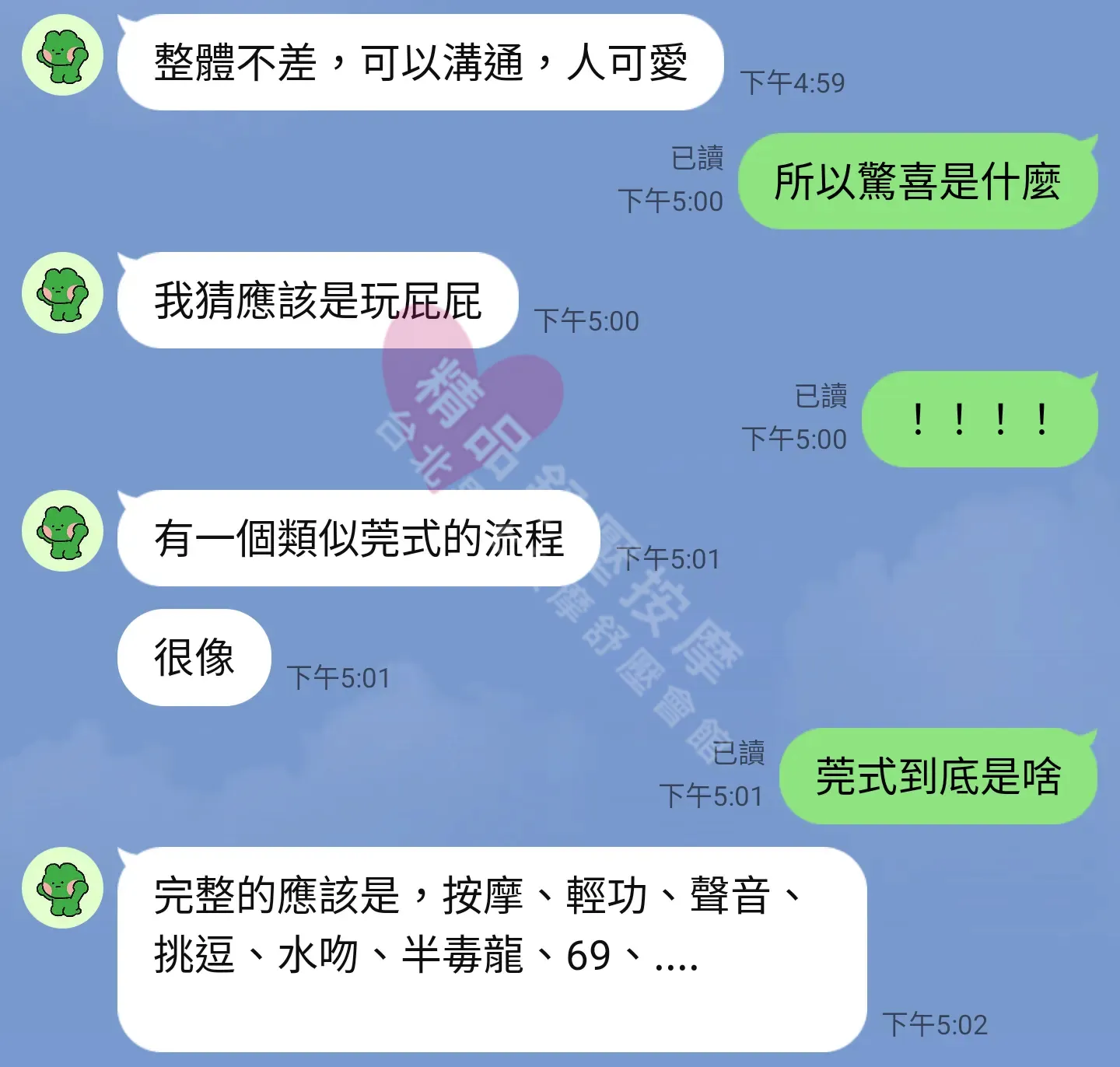 美容師都很有禮貌,先幫你背部按摩聊聊天,前戲會開始調情輕功,再來就是重點部位的加強。如果預算,也可以跟美容師聊聊加值服務,放心問都有機會。精品舒壓期待每位客人每次來舒壓都有個Happy Ending!