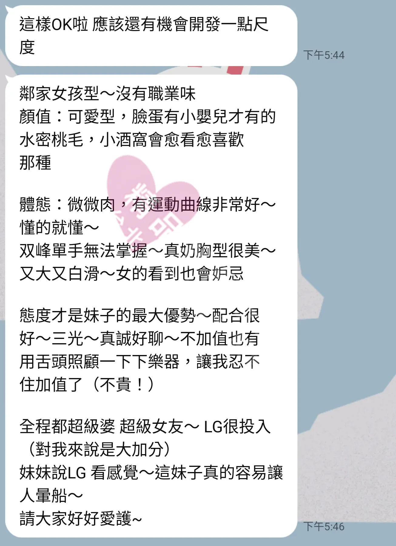 美容師都很有禮貌,先幫你背部按摩聊聊天,前戲會開始調情輕功,再來就是重點部位的加強。如果預算,也可以跟美容師聊聊加值服務,放心問都有機會。精品舒壓期待每位客人每次來舒壓都有個Happy Ending!