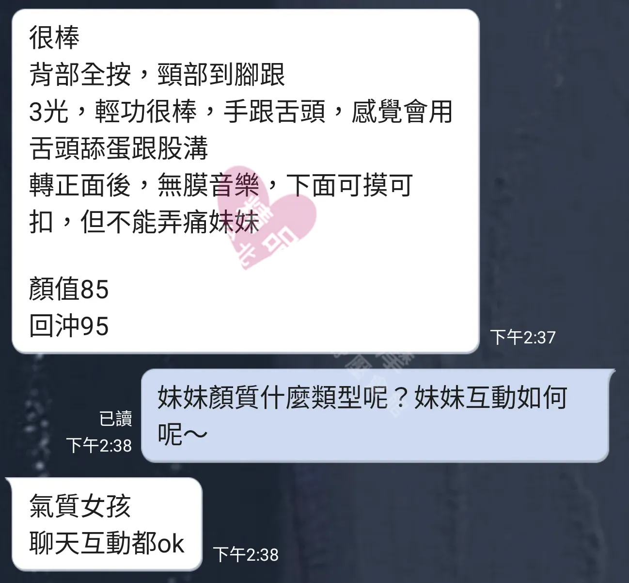 美容師都很有禮貌,先幫你背部按摩聊聊天,前戲會開始調情輕功,再來就是重點部位的加強。如果預算,也可以跟美容師聊聊加值服務,放心問都有機會。精品舒壓期待每位客人每次來舒壓都有個Happy Ending!