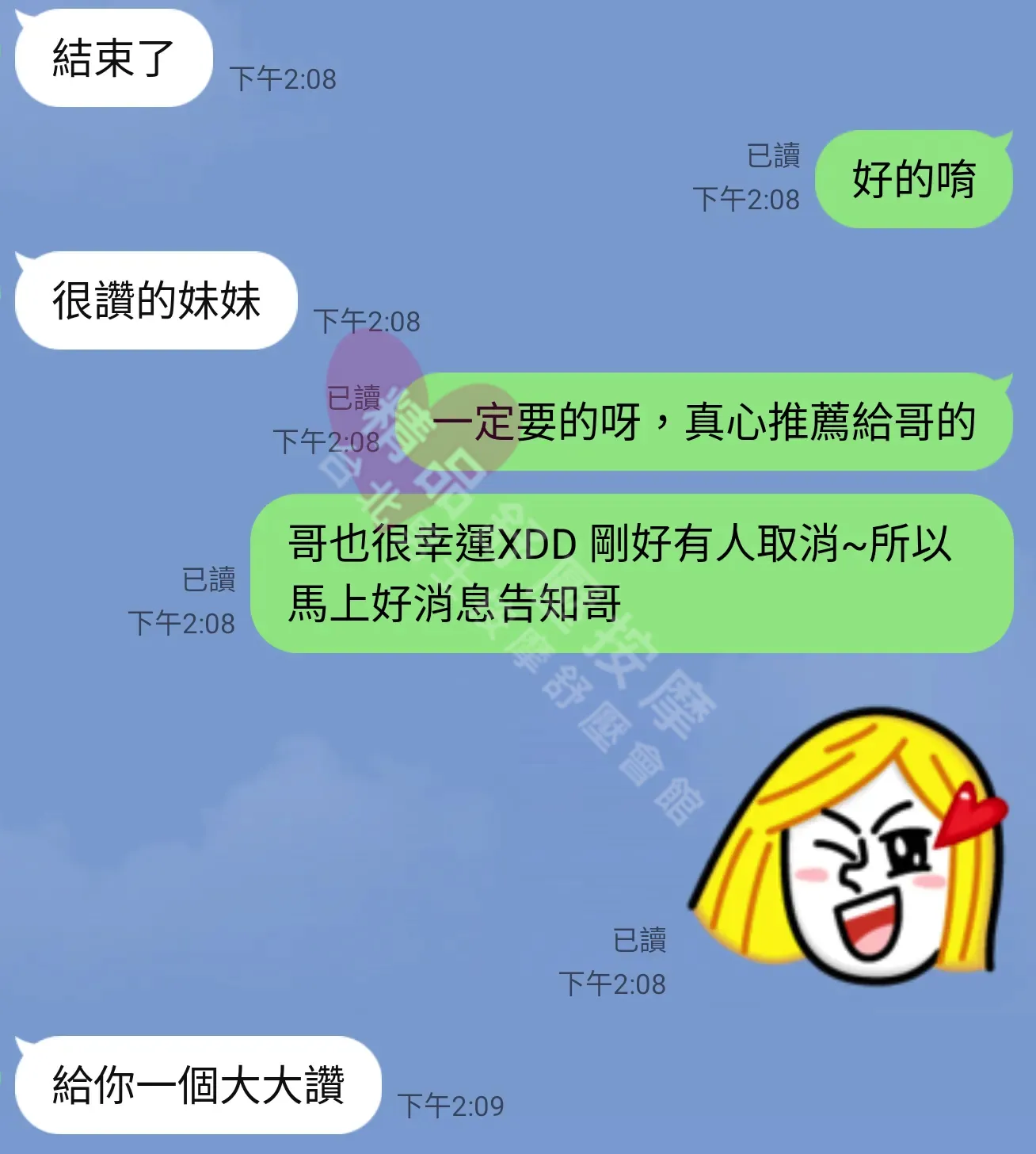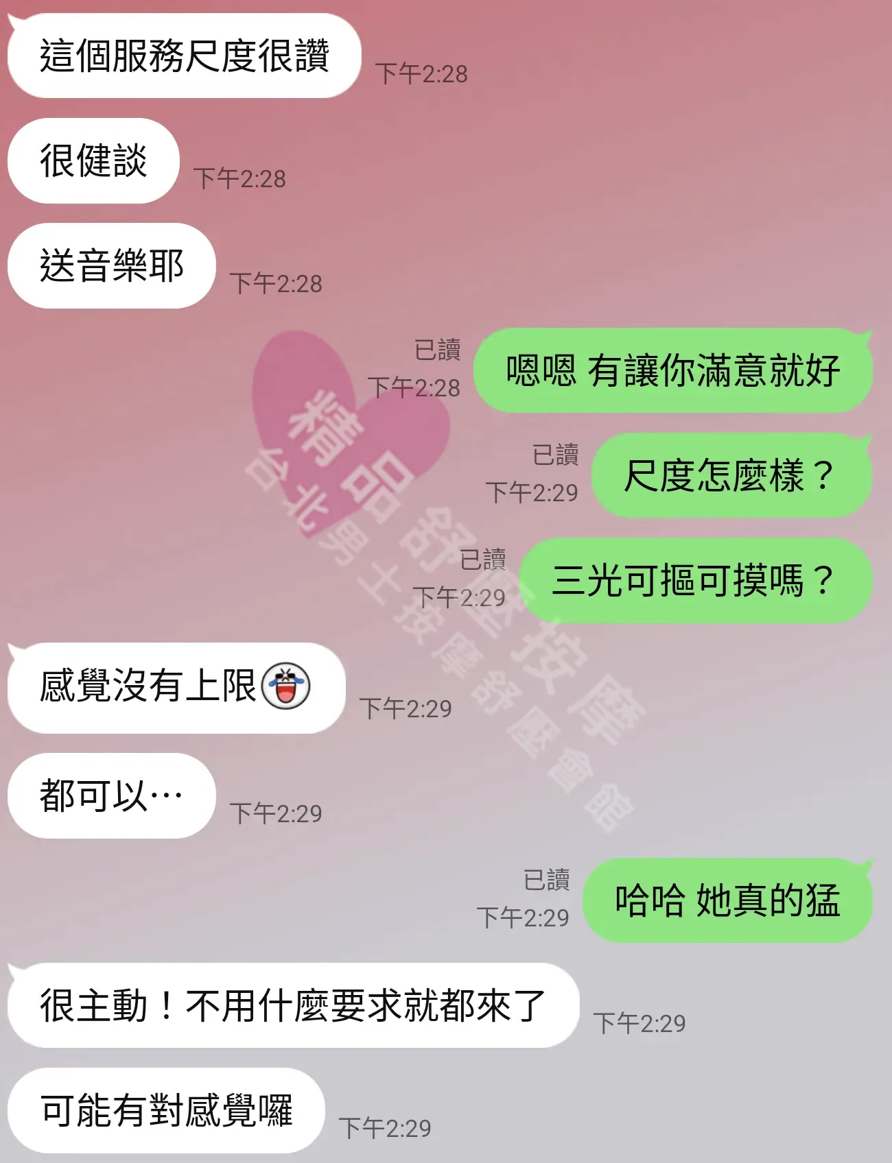 美容師都很有禮貌,先幫你背部按摩聊聊天,前戲會開始調情輕功,再來就是重點部位的加強。如果預算,也可以跟美容師聊聊加值服務,放心問都有機會。精品舒壓期待每位客人每次來舒壓都有個Happy Ending!