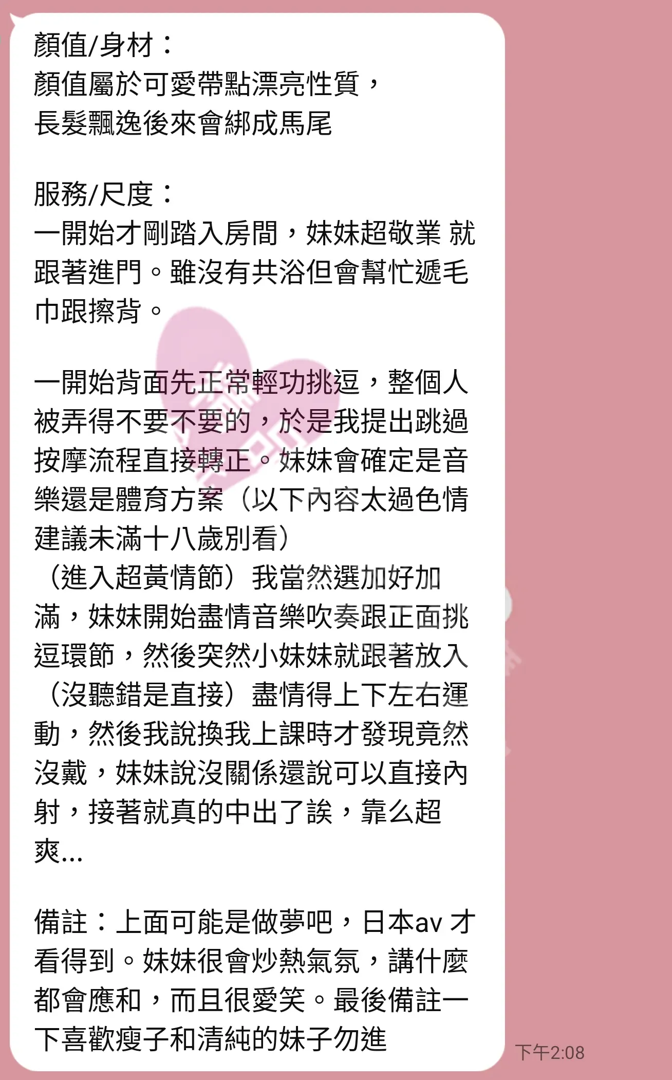 美容師都很有禮貌,先幫你背部按摩聊聊天,前戲會開始調情輕功,再來就是重點部位的加強。如果預算,也可以跟美容師聊聊加值服務,放心問都有機會。精品舒壓期待每位客人每次來舒壓都有個Happy Ending!