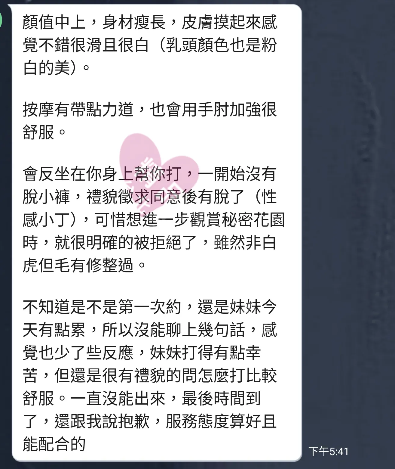 美容師都很有禮貌,先幫你背部按摩聊聊天,前戲會開始調情輕功,再來就是重點部位的加強。如果預算,也可以跟美容師聊聊加值服務,放心問都有機會。精品舒壓期待每位客人每次來舒壓都有個Happy Ending!