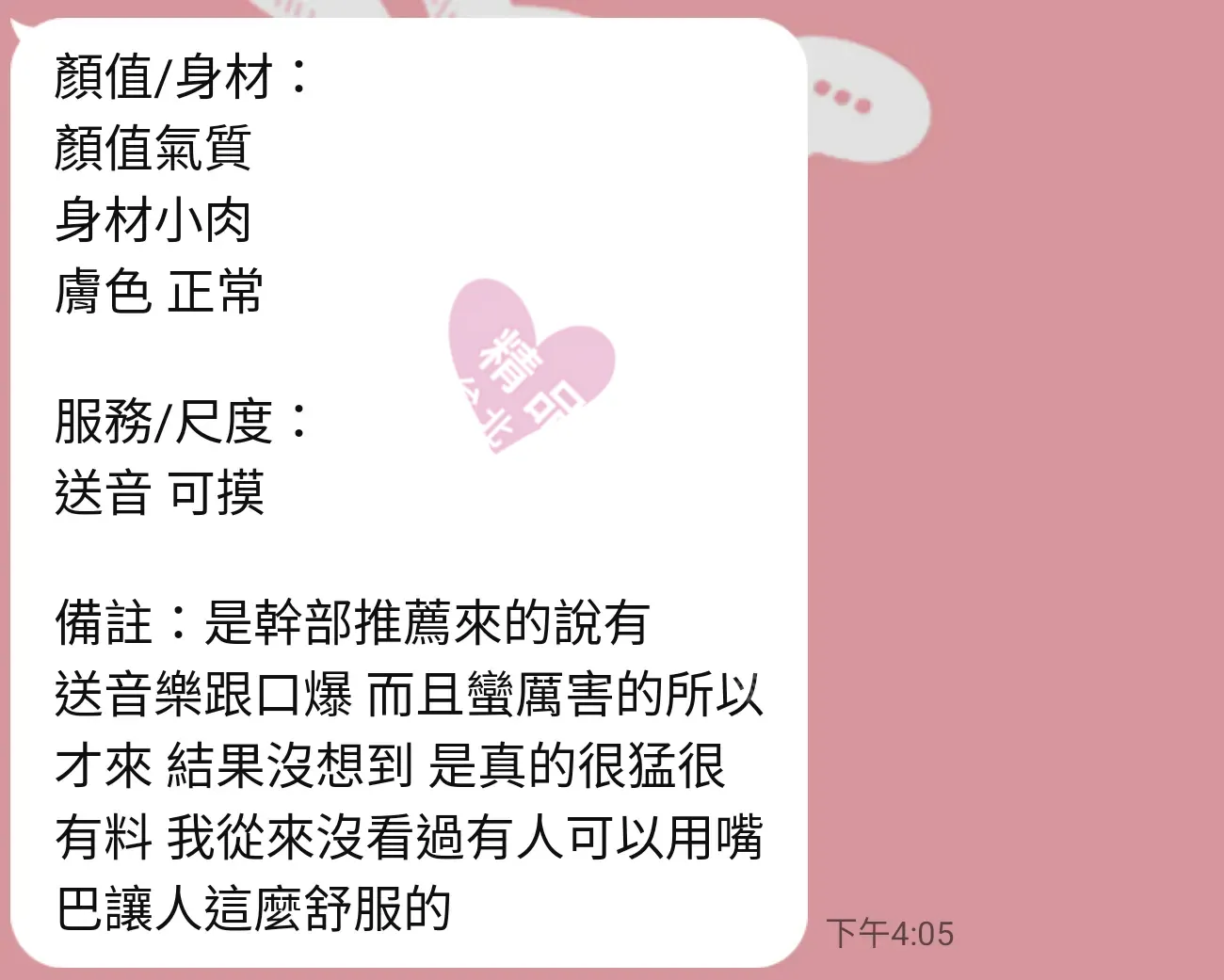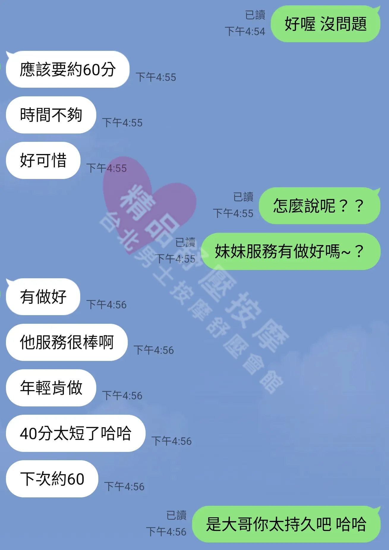 美容師都很有禮貌,先幫你背部按摩聊聊天,前戲會開始調情輕功,再來就是重點部位的加強。如果預算,也可以跟美容師聊聊加值服務,放心問都有機會。精品舒壓期待每位客人每次來舒壓都有個Happy Ending!