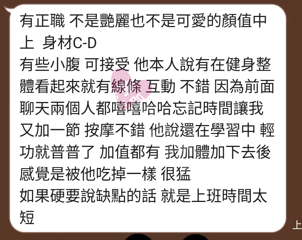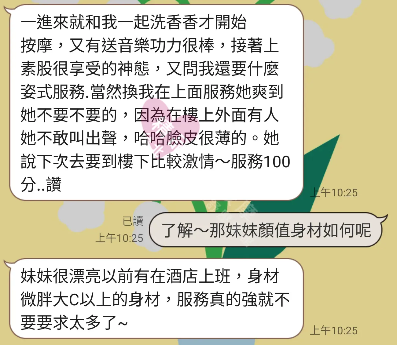 美容師都很有禮貌,先幫你背部按摩聊聊天,前戲會開始調情輕功,再來就是重點部位的加強。如果預算,也可以跟美容師聊聊加值服務,放心問都有機會。精品舒壓期待每位客人每次來舒壓都有個Happy Ending!