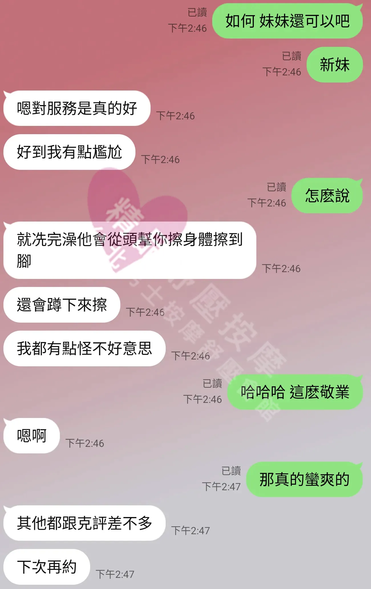美容師都很有禮貌,先幫你背部按摩聊聊天,前戲會開始調情輕功,再來就是重點部位的加強。如果預算,也可以跟美容師聊聊加值服務,放心問都有機會。精品舒壓期待每位客人每次來舒壓都有個Happy Ending!