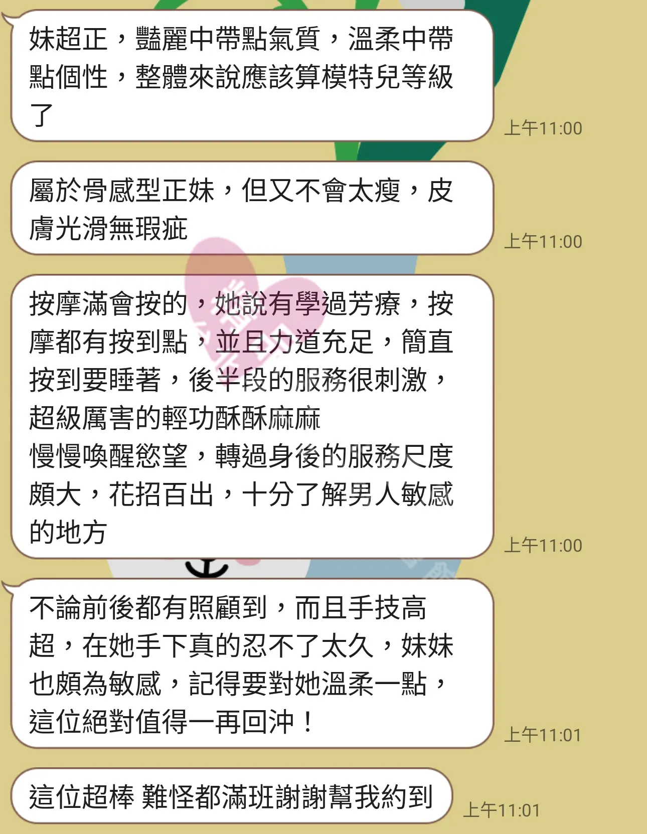 美容師都很有禮貌,先幫你背部按摩聊聊天,前戲會開始調情輕功,再來就是重點部位的加強。如果預算,也可以跟美容師聊聊加值服務,放心問都有機會。精品舒壓期待每位客人每次來舒壓都有個Happy Ending!