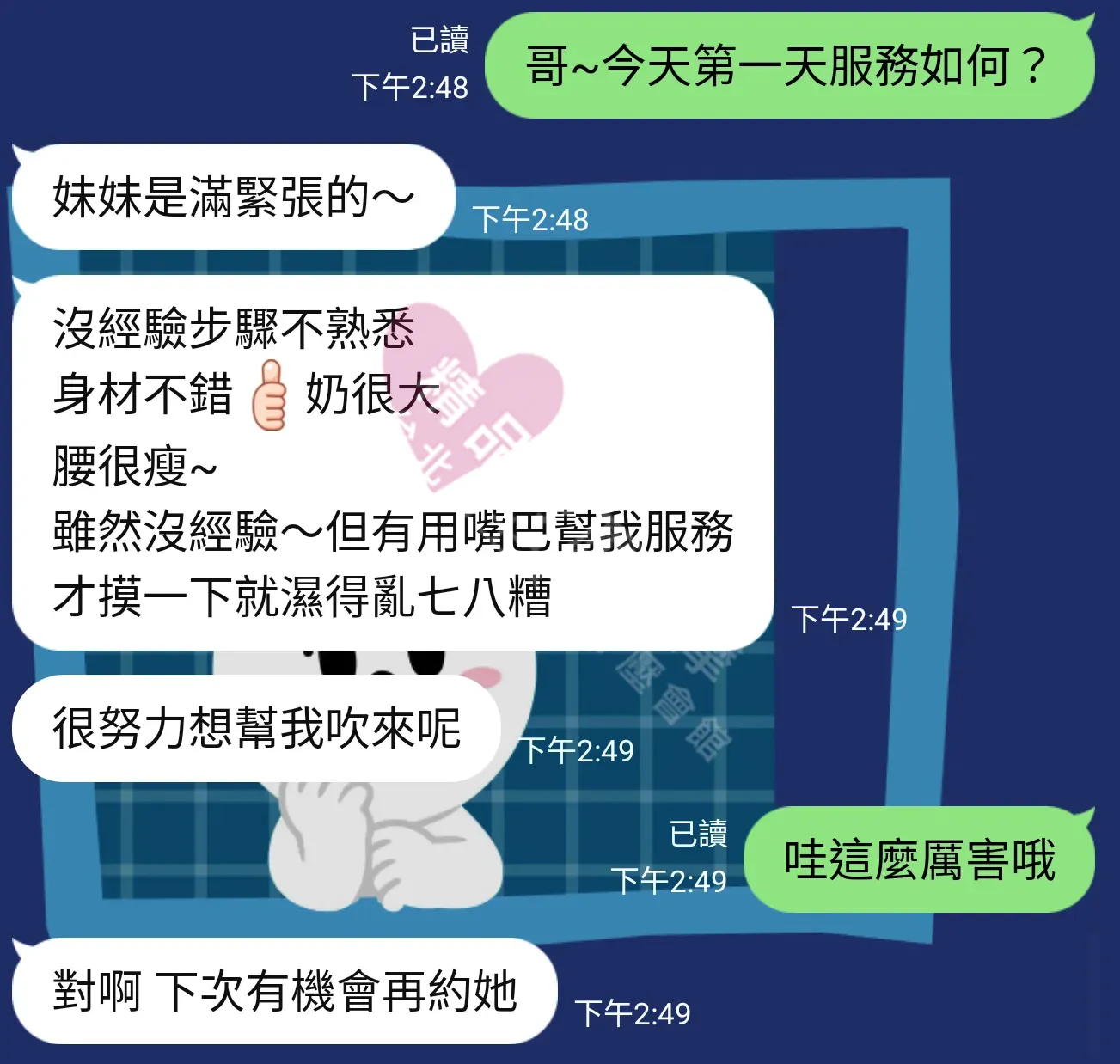 美容師都很有禮貌,先幫你背部按摩聊聊天,前戲會開始調情輕功,再來就是重點部位的加強。如果預算,也可以跟美容師聊聊加值服務,放心問都有機會。精品舒壓期待每位客人每次來舒壓都有個Happy Ending!